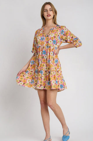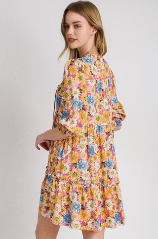 Finley Printed Collar Sleeved Dress - Navy Fleur