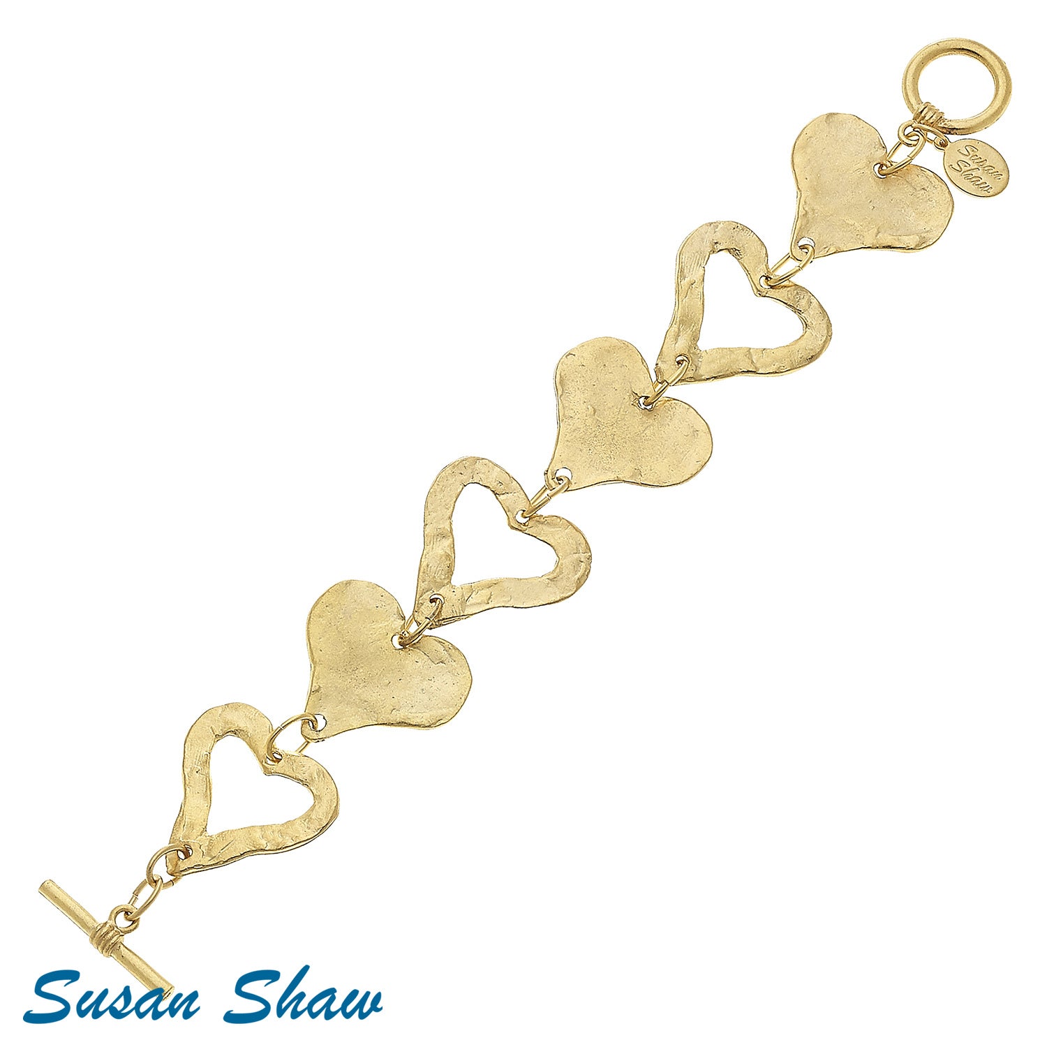 Sweet and sophisticated, the Linked Heart Toggle Bracelet showcases hammered open and solid hearts connected in perfect harmony. It’s a romantic twist on a classic bracelet design. Wear your heart - beautifully.
