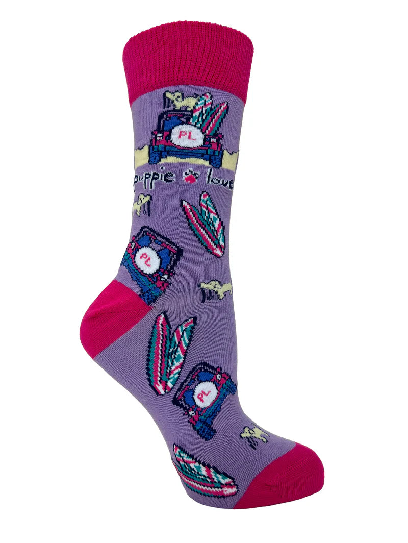 Step into comfort with these Beach Bum Pup Adult Crew Socks! Made from 80% Turkish super-soft cotton blended with nylon and spandex, they hug your feet with a cozy, snug fit. The playful contrast cuff, toes, and heel add a fun pop of color while keeping your feet happy all day long. Perfect for dog lovers who want to keep their paws—and theirs—feeling great!
