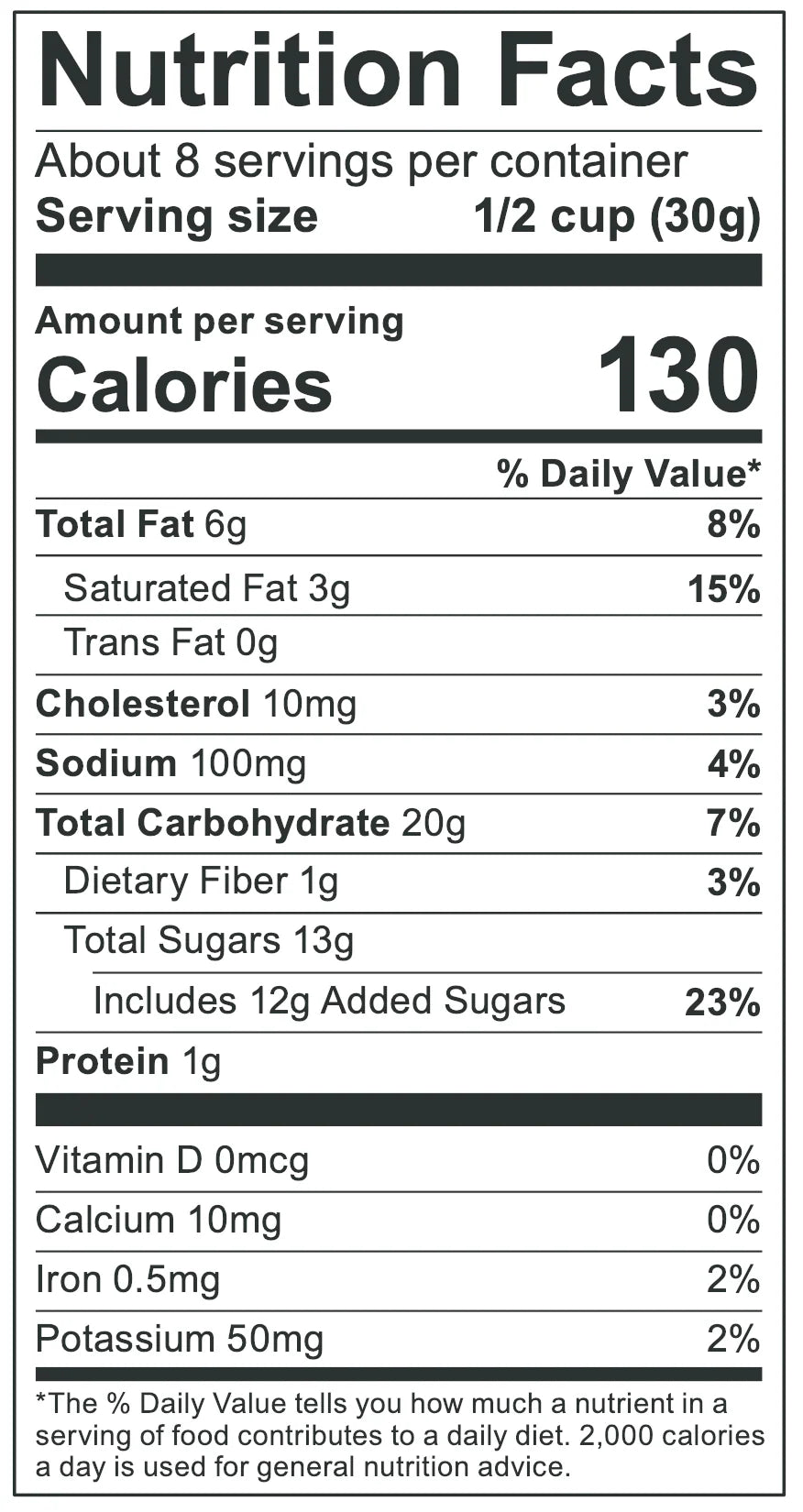 Manufactured in a facility that also processes: Wheat, Almond, and Pecan.