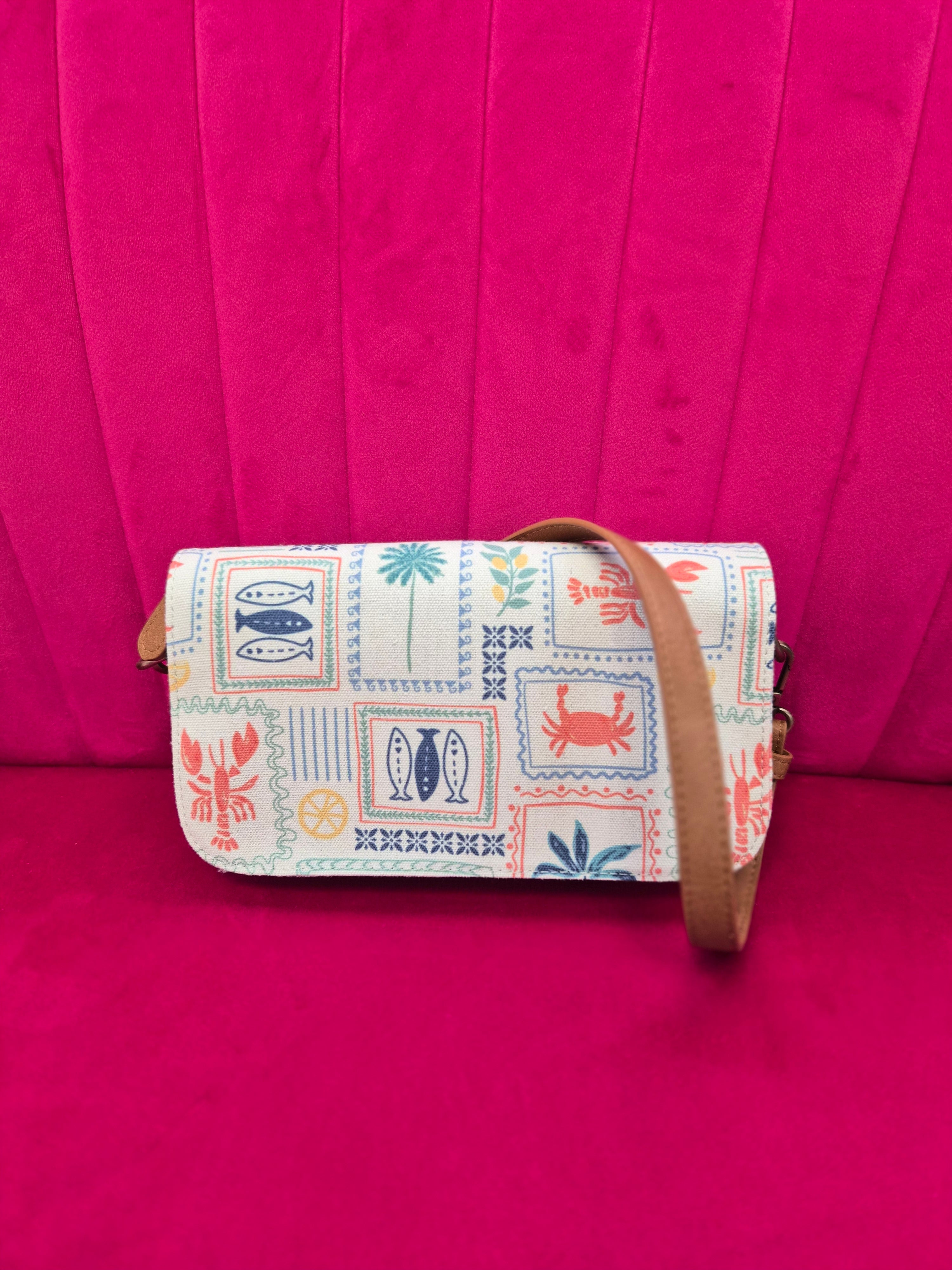 Catch the coastal vibes with this charming mini crossbody that's as fun as a day by the sea. Featuring a breezy coastal-themed print and vegan leather accents, it's the perfect blend of style and conscience. Dual closures—a secure top zipper and magnetic flap—keep your essentials safe while you explore. Compact yet spacious, this canvas companion is ready for beach trips, weekend getaways, or everyday adventures.