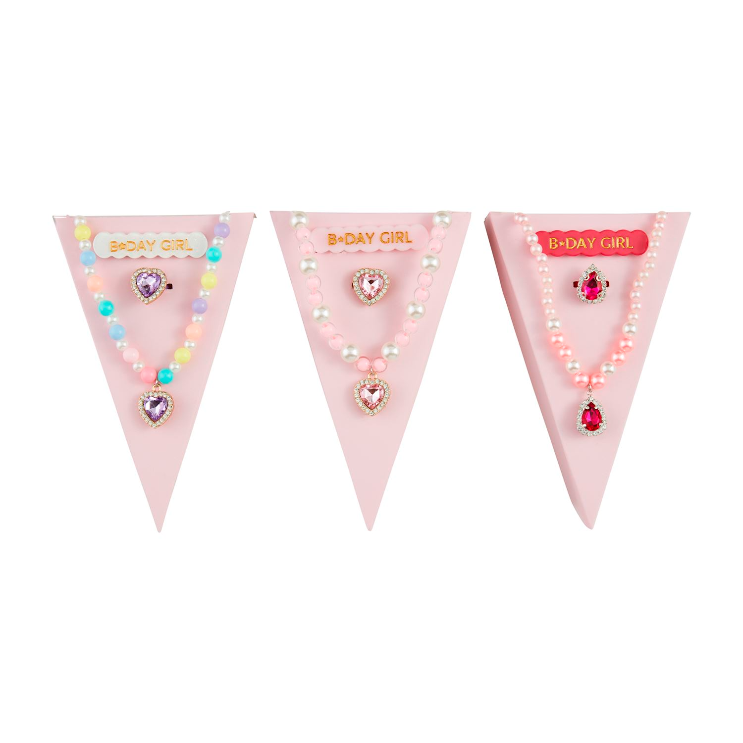 Celebrate in style with the Happy Birthday Girl Jewelry Set, perfect for every little glam star! This playful set includes a birthday girl hair clip, along with a matching ring and necklace. Choose from vibrant primrose, hot pink, or purple to make her special day even brighter. Designed to add fun sparkle and charm, this set makes birthday memories shine even more!