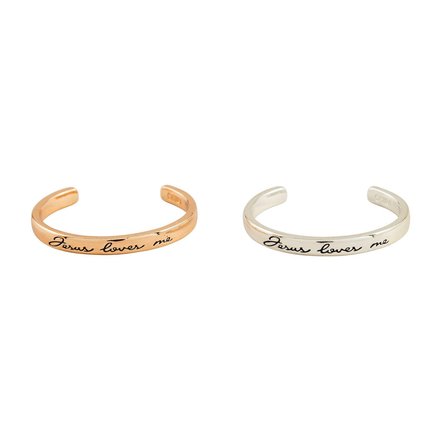 Celebrate your little one’s special milestone with the Jesus Loves Me Metal Bangle Cuff Bracelet. This charming, engraved cuff is perfectly sized with a 2 ½” diameter to fit comfortably on tiny wrists. Its timeless design adds a sweet touch of grace to any outfit, making it an ideal baby’s first bracelet. Packaged in a cute gift box, it’s a playful and meaningful keepsake ready to be cherished for years to come.