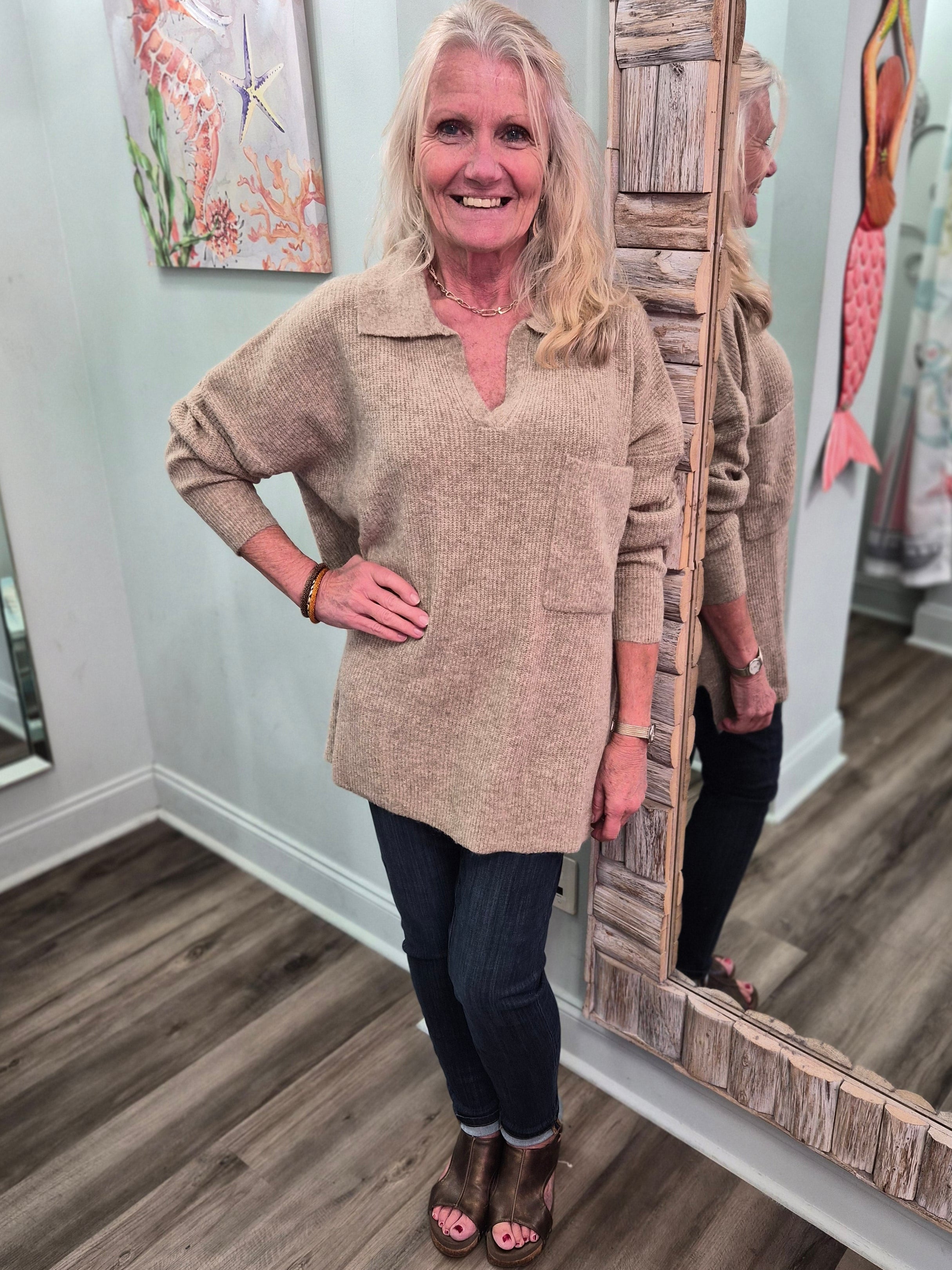 Neutral Ground Collared Sweater In Tan