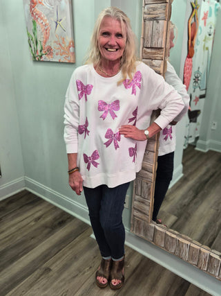 Glitz & Grace Sparkly Bow Sweatshirt In White