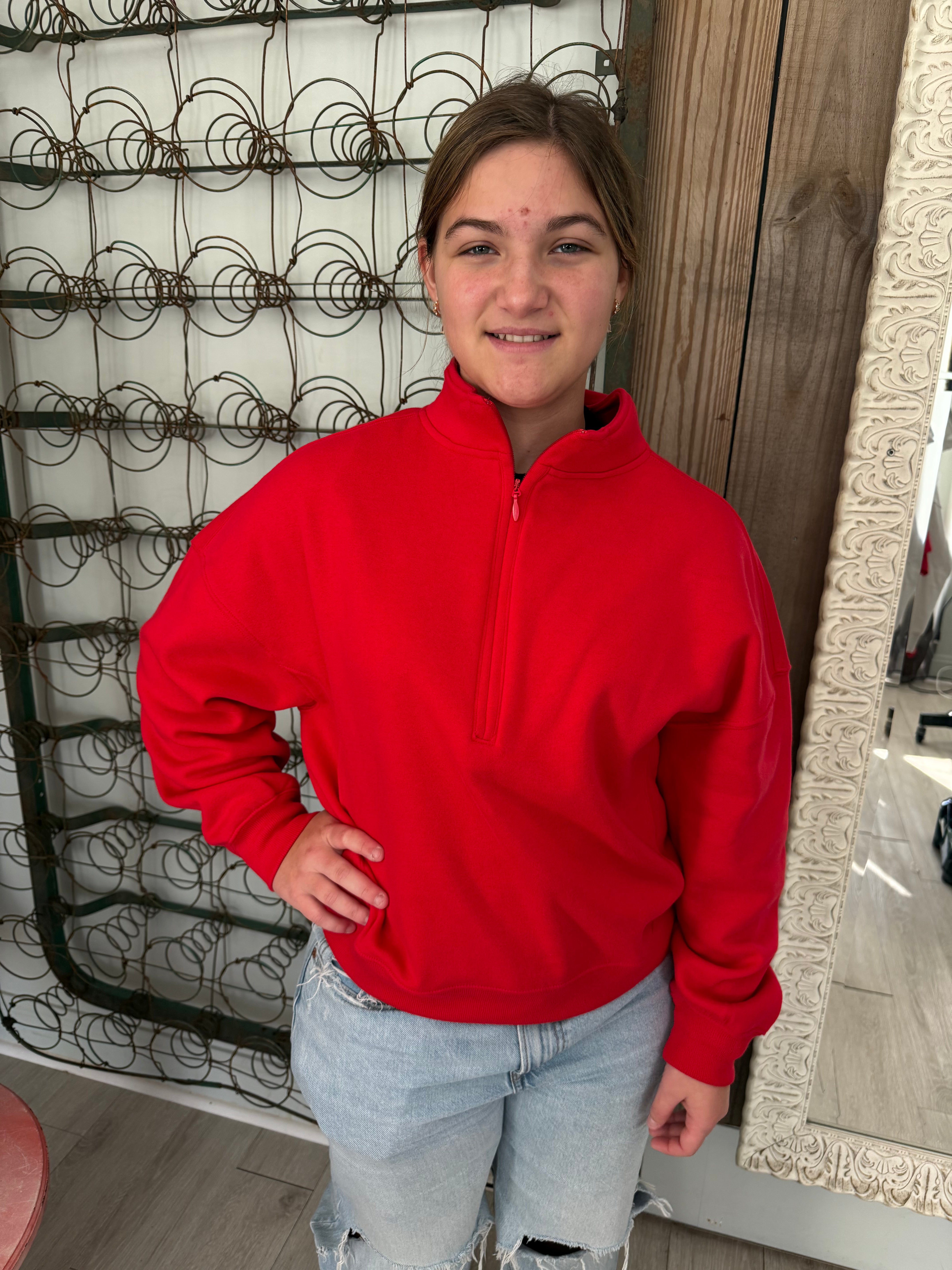 Keep It To Yourself Half-Zip Sweatshirt in Ruby *Doorbuster Deal*