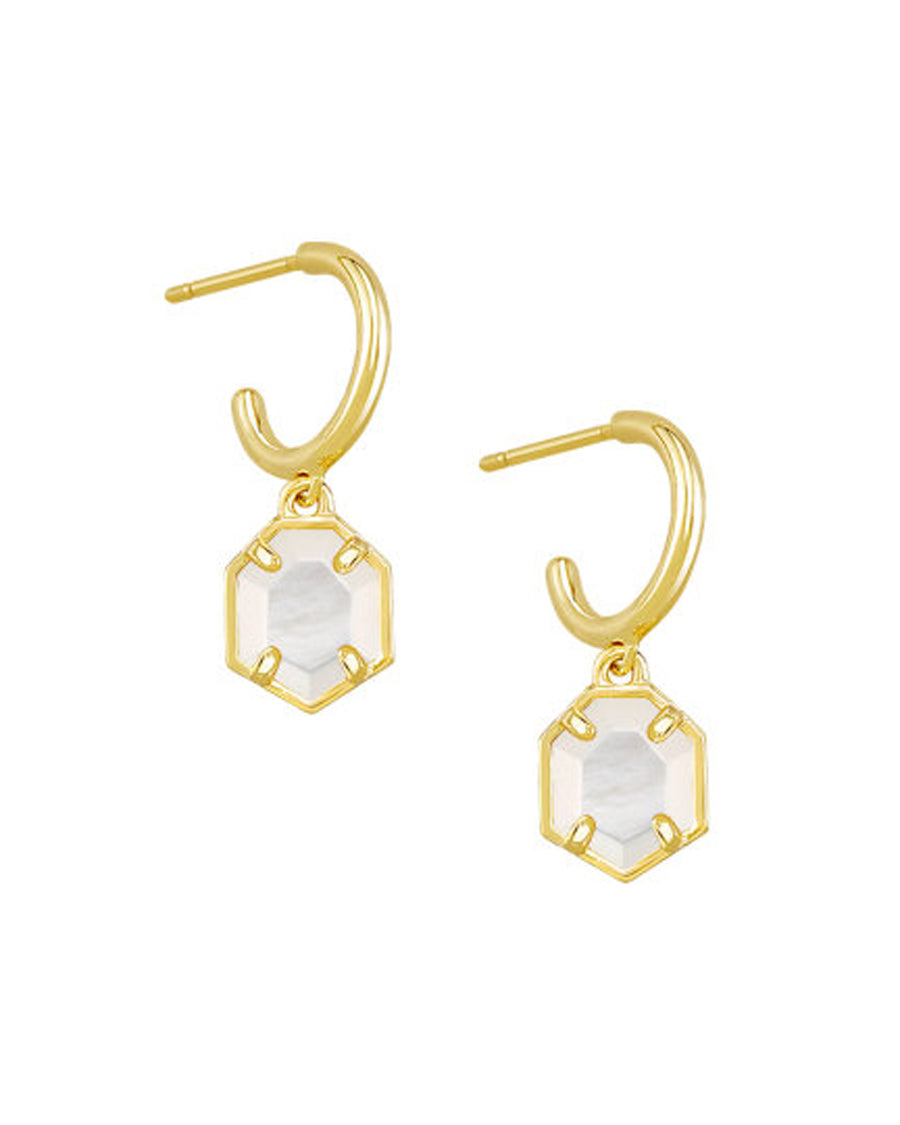 A sleek take on modern minimalism, these huggie earrings feature geometric drops framed in gold. The clean lines and subtle shine make them perfect for layering or wearing solo for a touch of everyday polish.