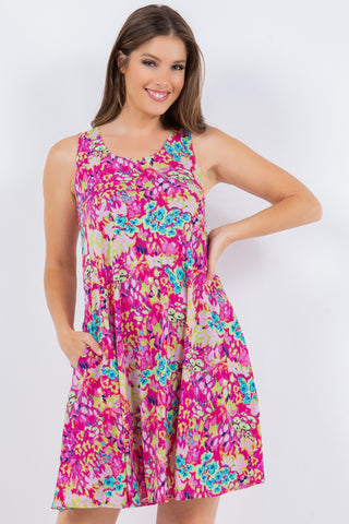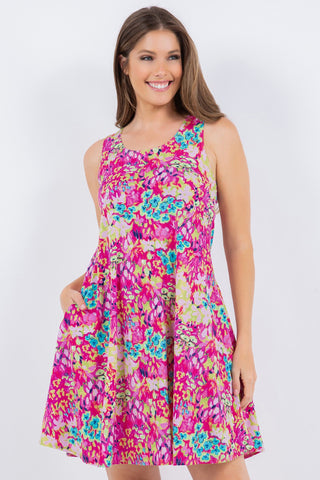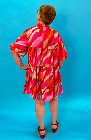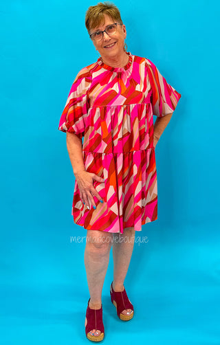 Sandra Ribbed V-Neck Baby Doll Dress in Fushia - Final Sale
