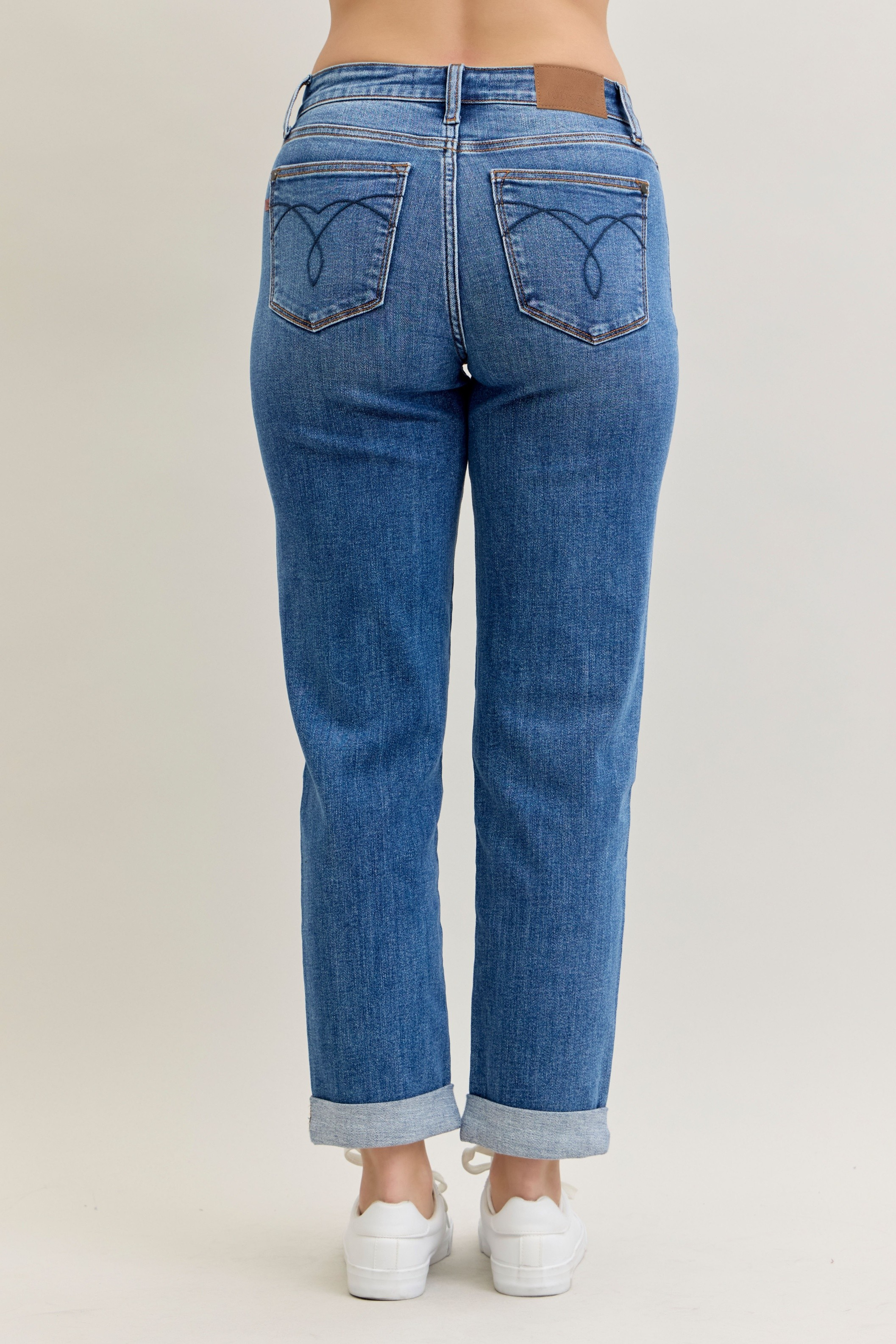 Judy Blue Mid-Rise Boyfriend Classic Cuffed Jeans in Medium