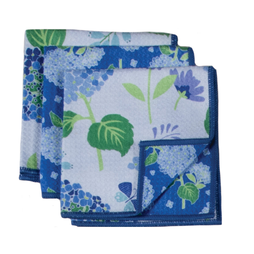 Bring a splash of botanical beauty to your kitchen with this charming set of three earth cloths featuring delicate blue hydrangea blooms. Crafted from recycled materials, these nature-inspired towels blend eco-conscious living with everyday functionality. Perfect for drying dishes, wiping counters, or adding a pop of floral flair to your culinary space. Each cloth showcases vibrant hydrangea patterns that celebrate the natural world while keeping your kitchen looking fresh and intentional. Make a sustainable choice without sacrificing style.