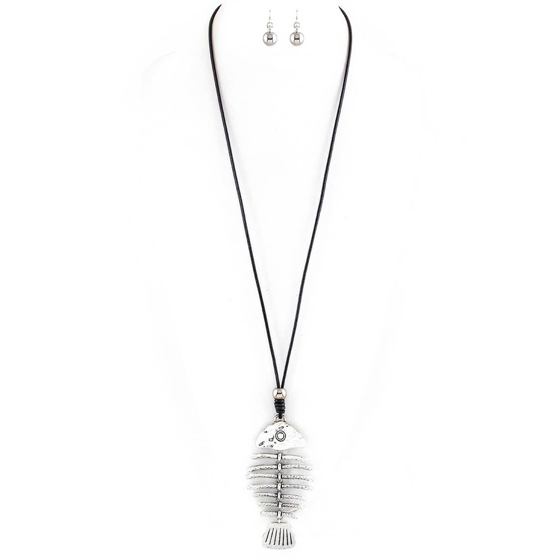 Get hooked on this charming Metal Fish Bone Pendant Necklace Set! Featuring a 30" chain with an extension and 1.2" drop earrings, this lead and nickel compliant set is not only stylish, but also safe for sensitive skin. Reel in the compliments with this quirky and fun accessory.