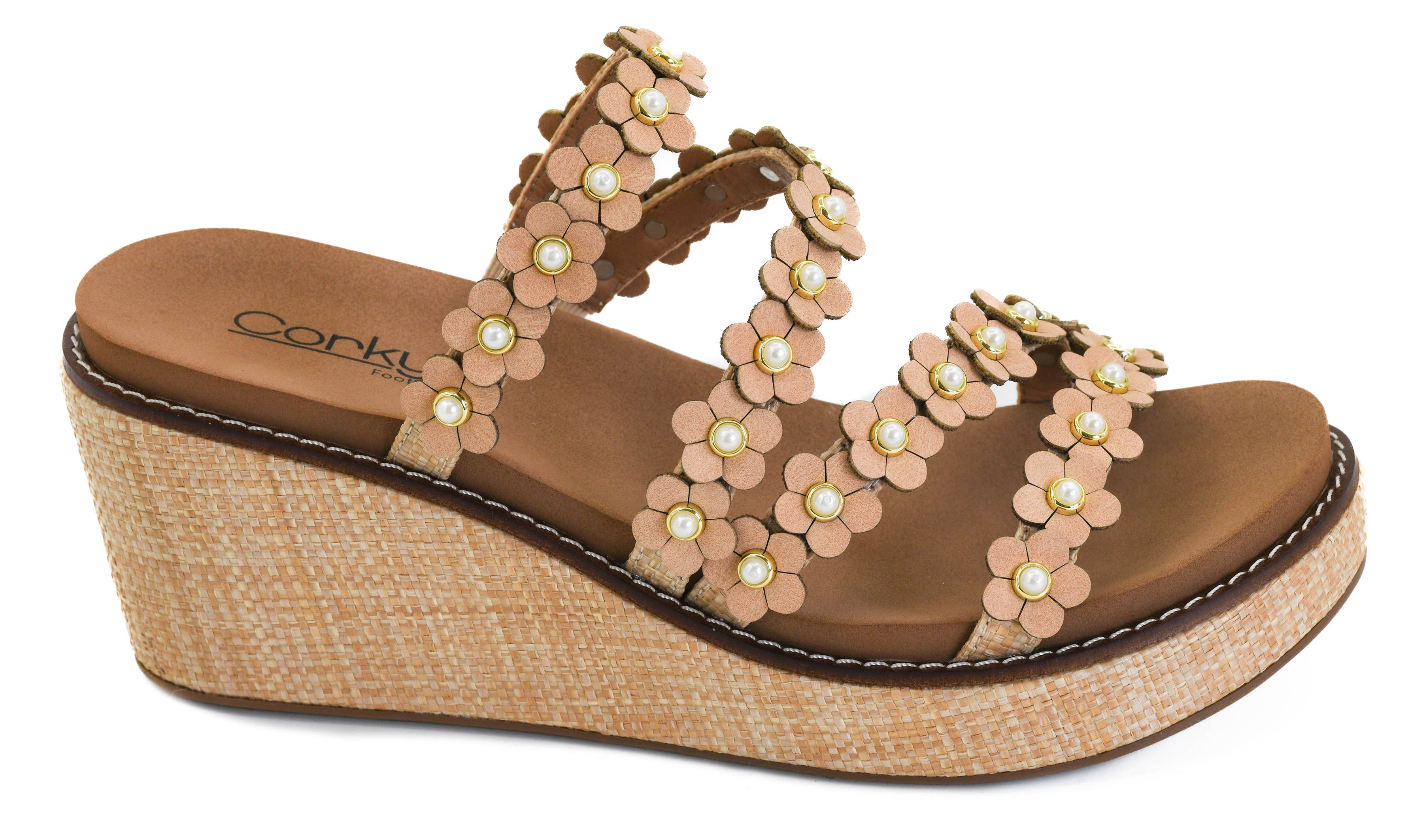 Step into effortless style with the Corkys Let's Be Friends Wedge in Raffia. This gorgeous wedge features Corky's signature footbed, designed for all-day comfort that doesn't compromise on looks. Delicate raffia flowers adorn the straps, bringing a fresh, natural vibe to your wardrobe. Whether you're heading to brunch or a casual outing, this is the perfect shoe to elevate your spring and summer style with comfort you can count on.