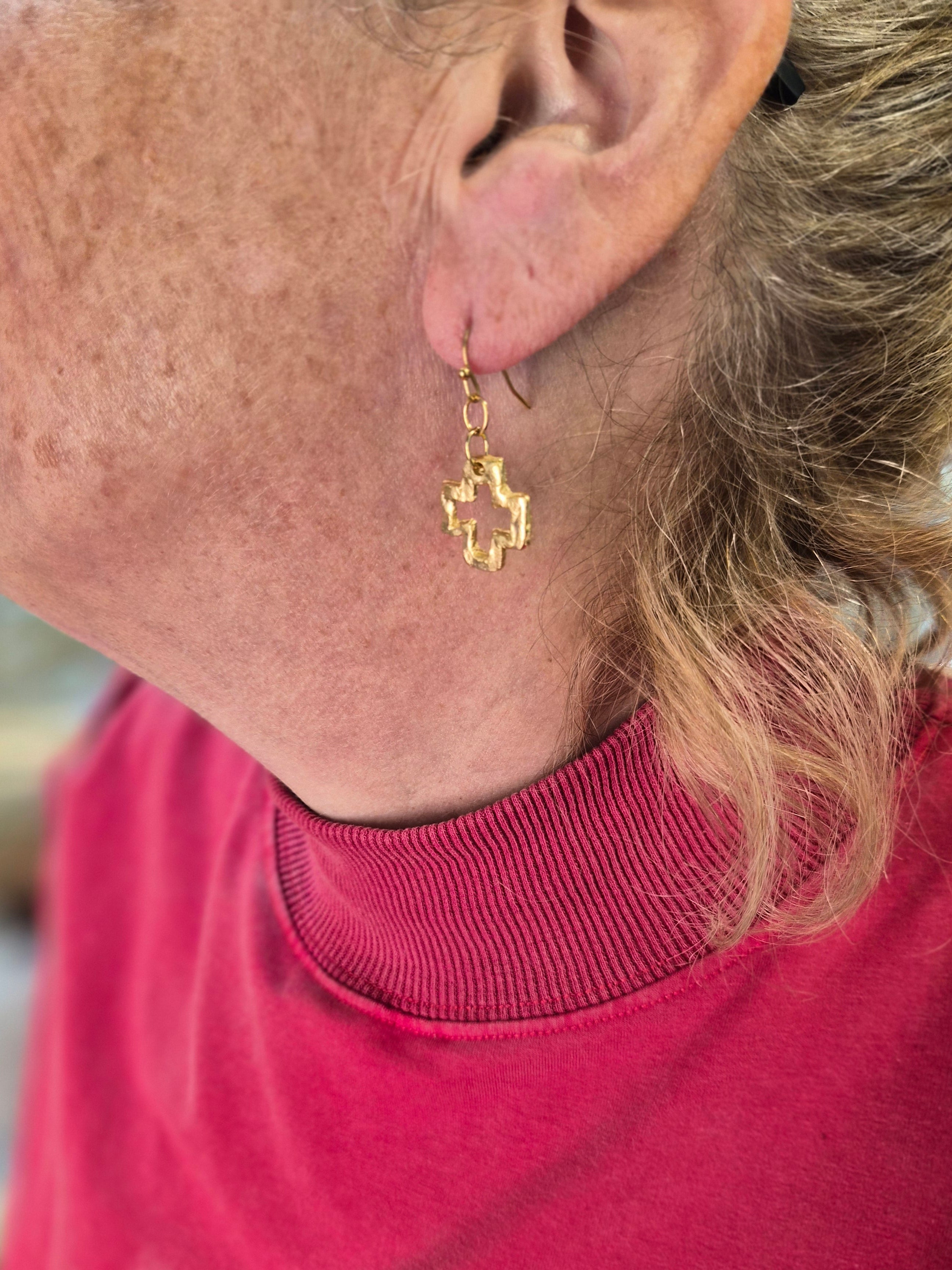 The Small Open Cross Earrings are the perfect blend of faith and fashion. These lightweight drops feature open hammered crosses for a beautiful look, perfect for any occasion. Designed with easy fishhook backs, they bring subtle shine and timeless charm to any look.