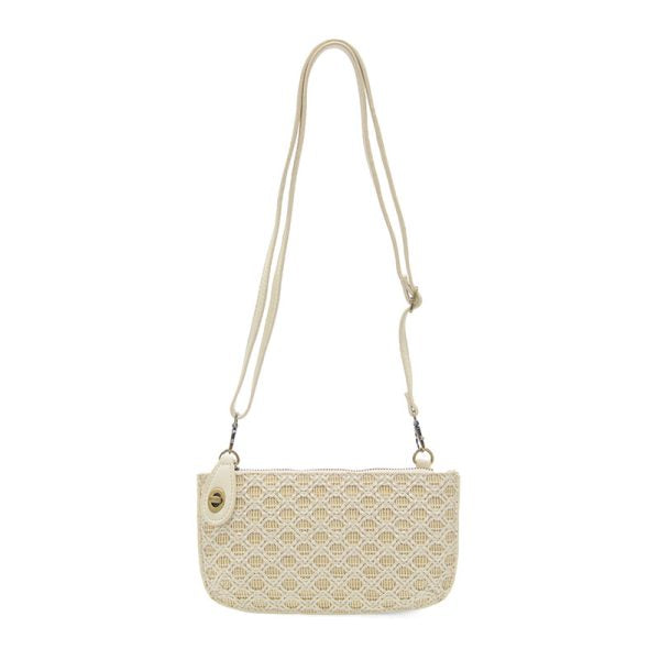 Introducing the Maria Woven Mini Wristlet Crossbody—your new summer essential! This chic clutch features an intricate lattice weave in dreamy ice cream hues that'll elevate any outfit. Rock it as a wristlet with the 7-inch detachable strap, or go hands-free with the adjustable crossbody strap (8–21 inch drop). Inside, you'll find six card slots, a zippered pocket, and plenty of space for your phone. Topped with a polished turn-lock closure and crafted from 100% vegan leather with brass-plated hardware, this versatile bag is ready for brunch, beach days, or night out.