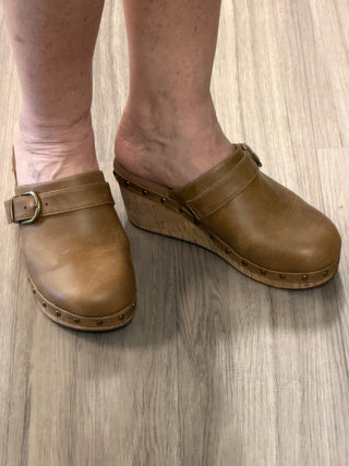 Diana Mule Wedge Sandal in Brown Sugar Leather