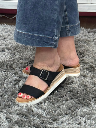 Diana Mule Buckle Wedge Sandal in Black