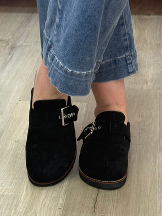 Corkys Day Dream Clogs In Black Faux Suede