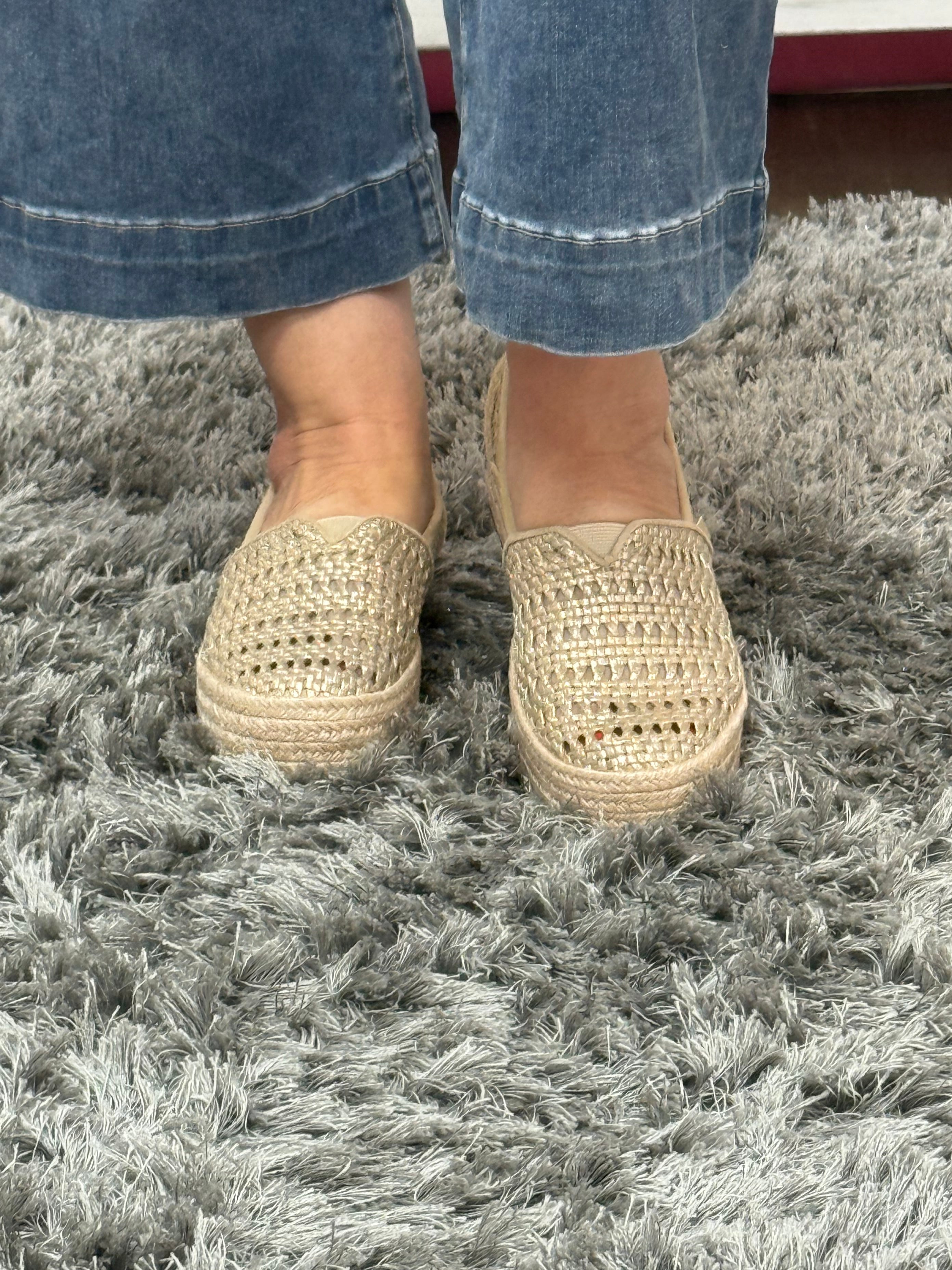 Step into sunshine with the Valencia Platform Espadrille in shimmering Champagne! These slip-ons elevate your look with a chic rope-wrapped platform and breezy basket weave uppers, perfect for beachside strolls or city adventures. Inside, cushy CloudBound™ insoles keep your feet happy with every step, offering breathable comfort that lasts all day. Add a playful sparkle to your summer style with these must-have espadrilles.