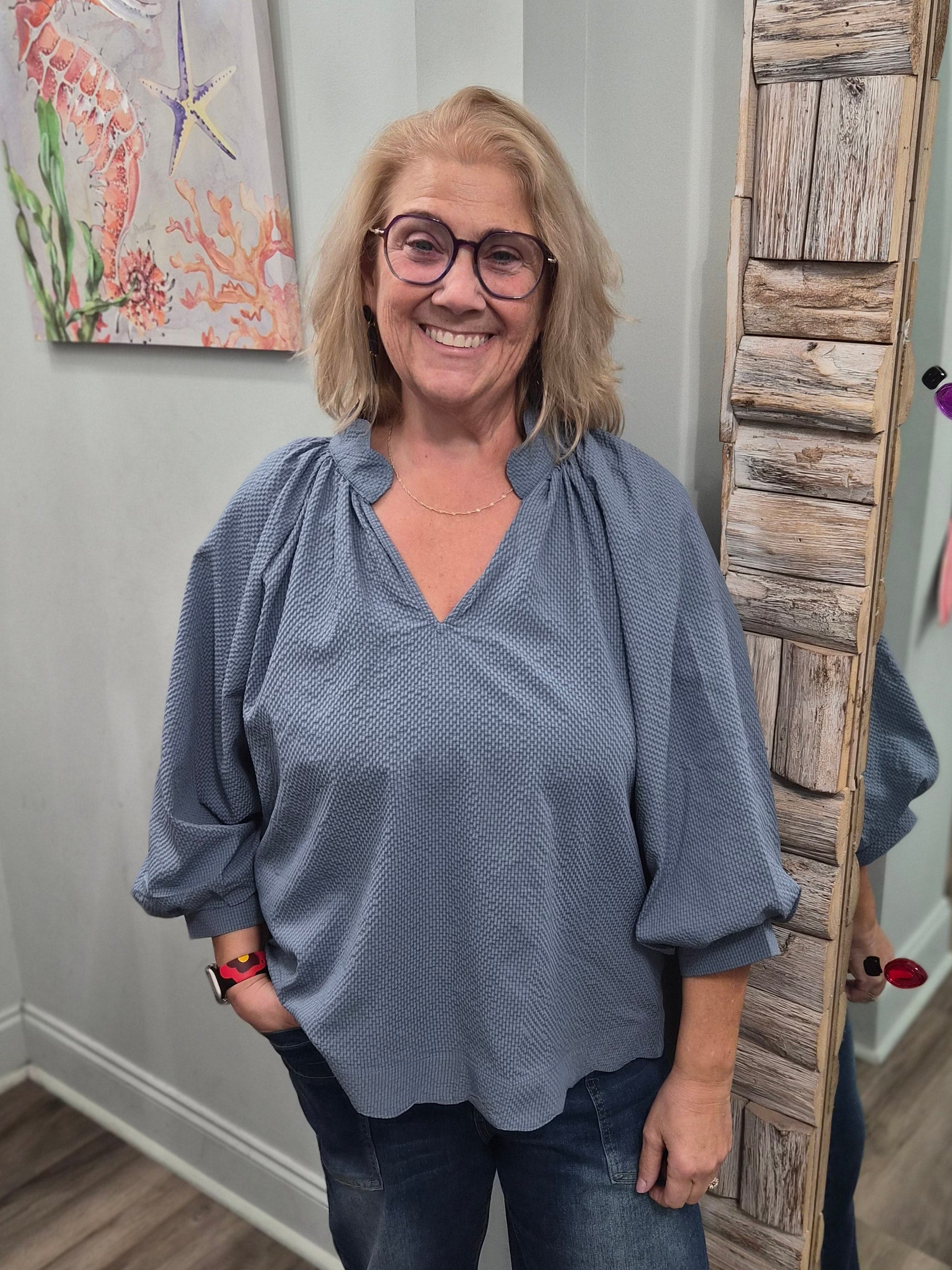 Embrace whimsical comfort in our Keep Dreaming Top! This playful blouse features a delightful waffle texture, flirty V-neckline, and charming 3/4 balloon sleeves that add just the right amount of flair. The relaxed, flowy fit dances with your movements, while the scalloped hemline adds a touch of fancy-free fun. Perfect for fall layering or solo statement-making!