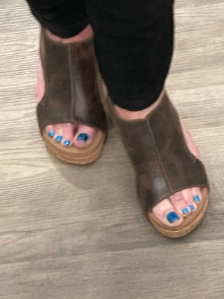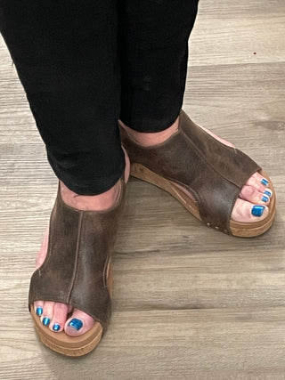 Corkys Make Em Blush Wedge Clogs In Chocolate Faux Suede
