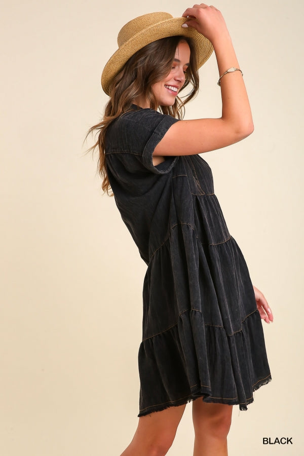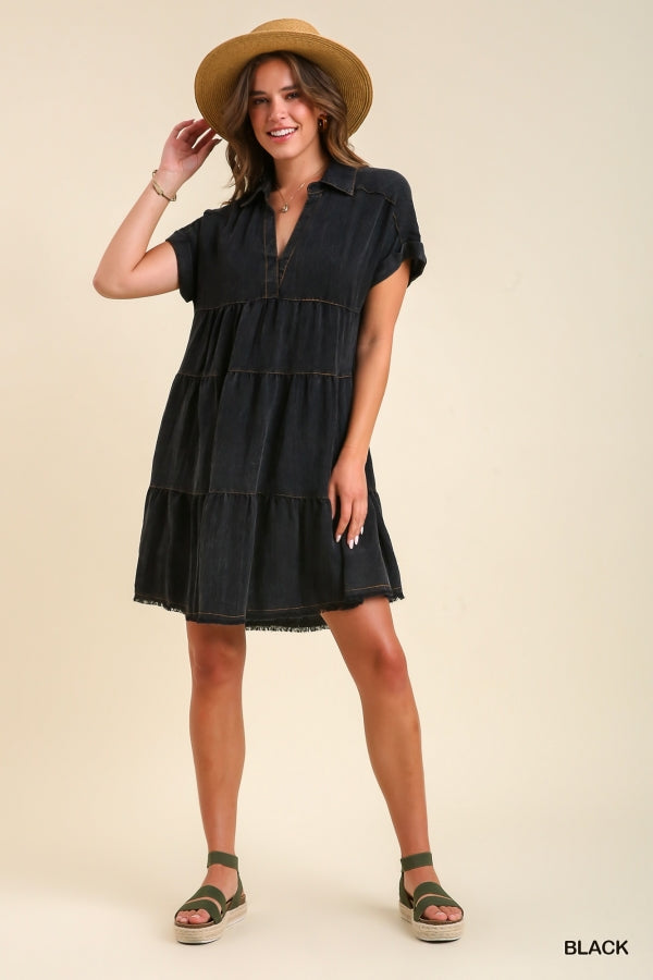 This dress is sure to make a statement. The Charlie Dress in Black features a Snow Wash Collared Neck and a Tiered design that gives it an elegant, sophisticated look. Pair it with a kimono and you'll be ready for whatever life throws at you.