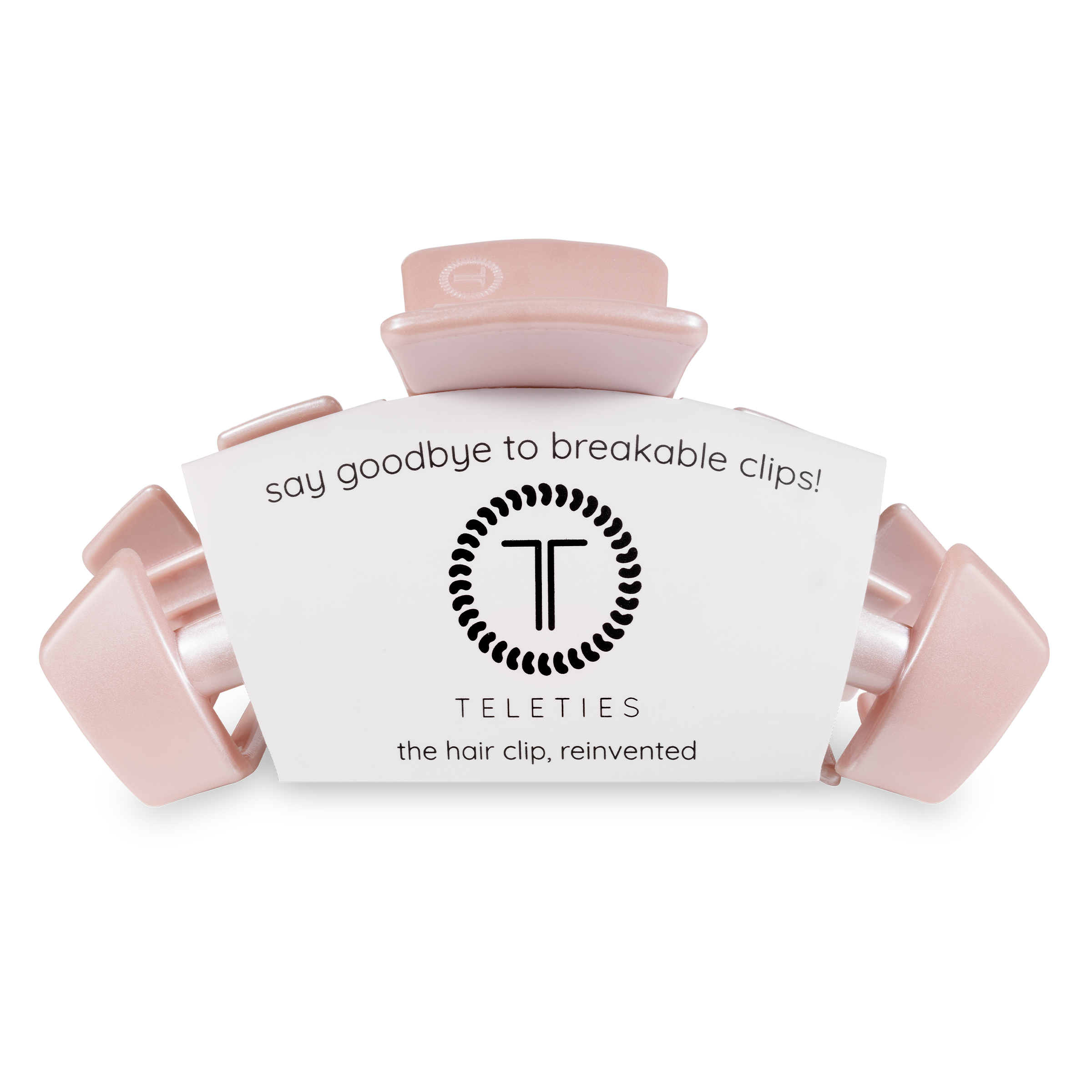 Refresh your look this season with TELETIES latest collection of hair clips. Designed to bring shimmer and shine to every one of your Springtime looks. Crafted using a new and unique pearlized technique, these clips glisten in the sunlight, perfect from sunup to sundown! Key Features: • Pearlized Shine: A unique finish that catches the light fur a subtle, luxe glow. • Comfort & Security: Bendable teeth provide a gentle yet firm grip, protecting your hair all day and all night. • Durable & Lightweight: Designed to last without causing breakage or discomfort. Spring into chicness, comfort, and ease—let your hair shine with the TELETIES Spring Hair Clip Collection. Large clips are great for thick hair. The large clip is 4.5 inches long.