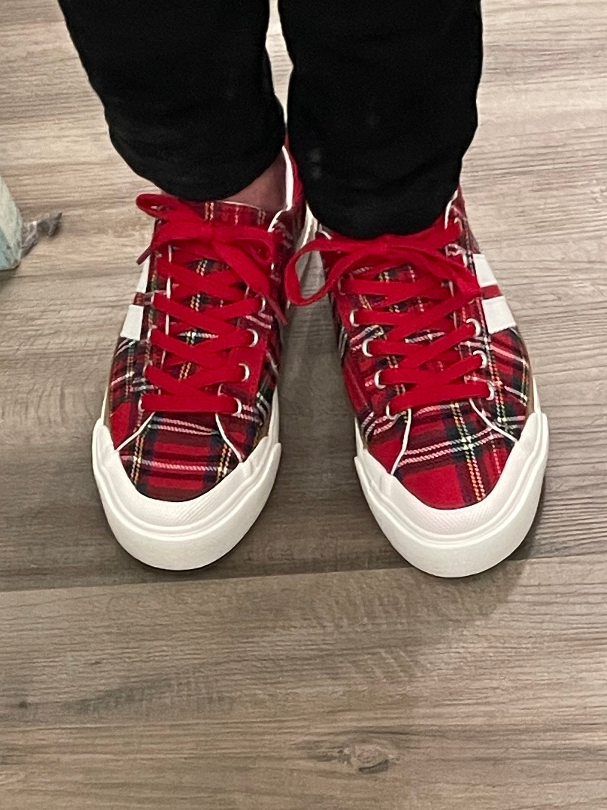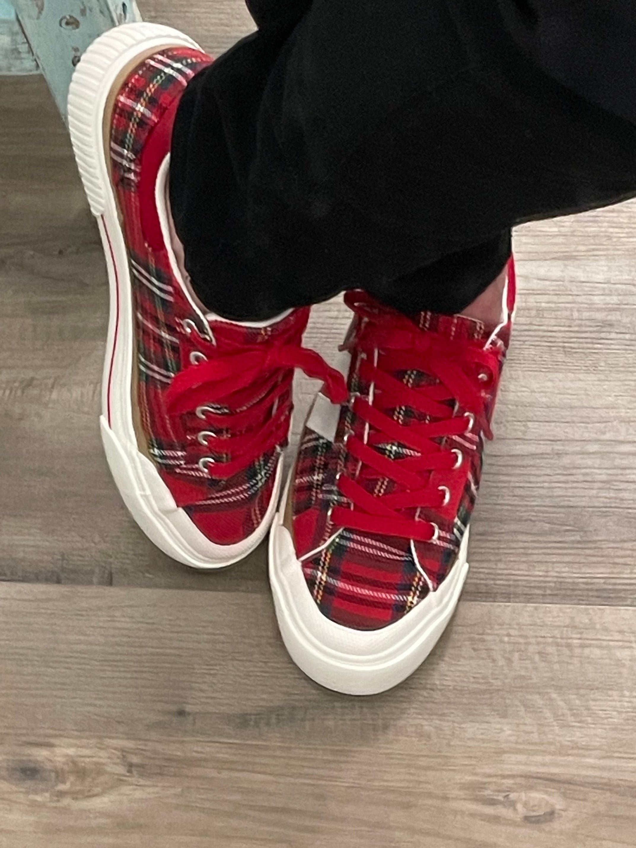 Be the talk of the town with the Corkys That's Her Sneaker in Red Plaid! This Sneaker has a 1 inch platform, just enough to give you the perfect amount of sass and fun! Pair her with your favorite pair of denim and a sweater, then you're ready for it all.