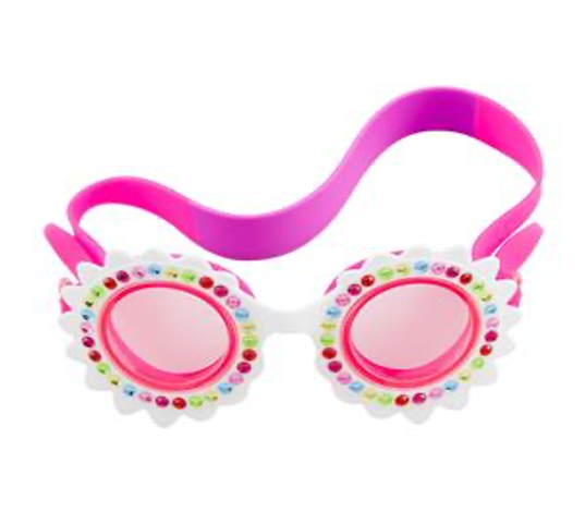 UV protected silicone swim goggles with adjustable soft silicone straps. Comes with plastic storage container.