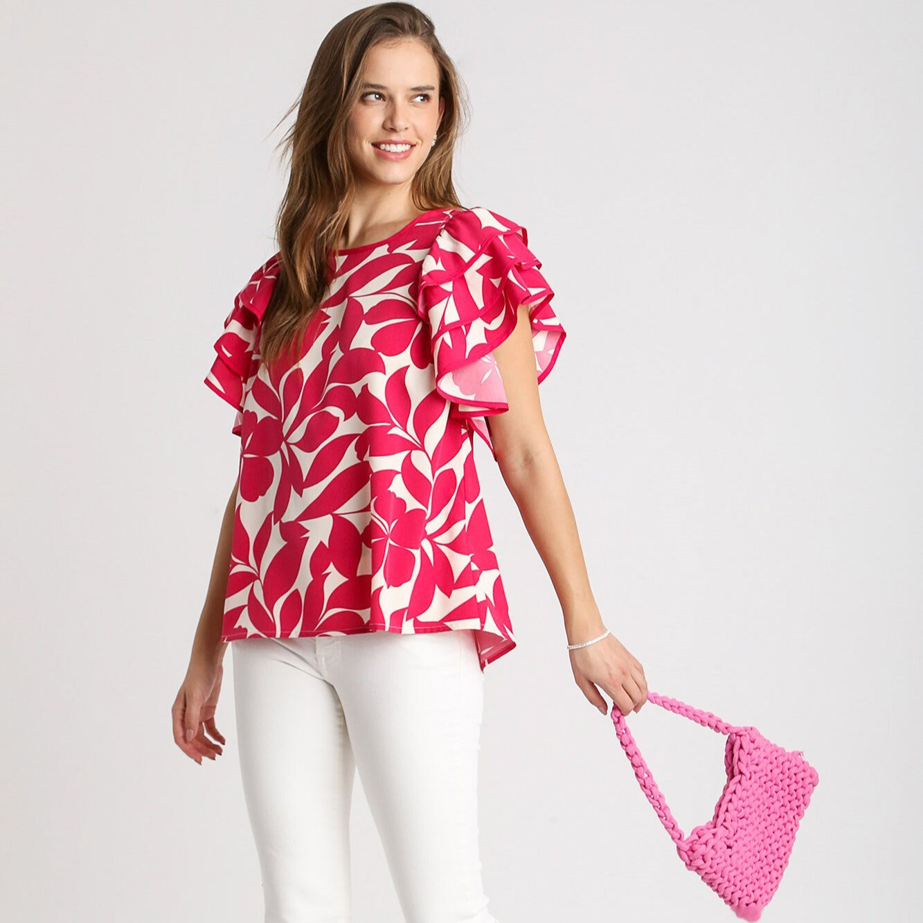 Unleash your inner fashionista with our Groove Into Spring Top in Magenta! This unique top features a boxy cut, round neck, and layered ruffle sleeves for a fun and playful look. The back button keyhole adds a touch of sophistication. Get ready to groove into spring with this two tone stunner!