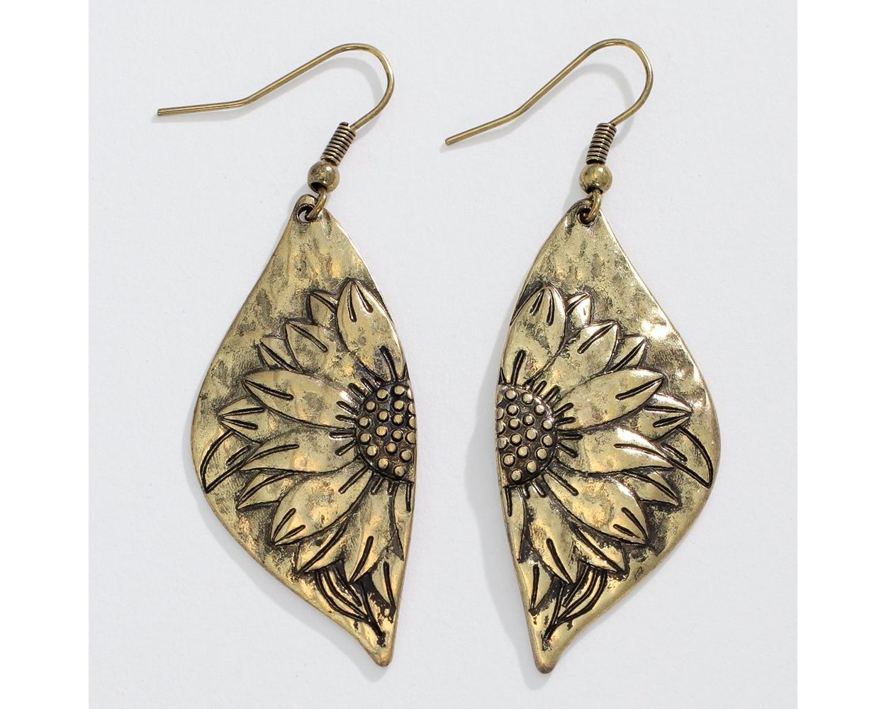 Brighten your day with these hammered sunflower earrings! Their textured and sunny design add a burst of cheerful charm to any outfit. Perfect for spreading some floral flair wherever you go!