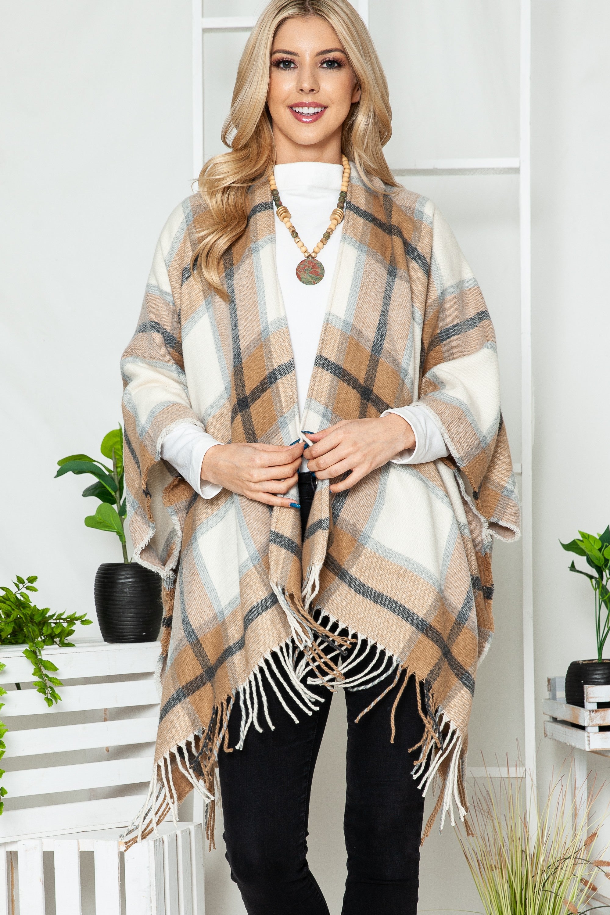 Look effortlessly stylish in the Harvey Plaid Kimono! Crafted with ultra-soft fabric, this kimono piece is so cozy you won't want to take it off. One size fits most up to an XXL, making it a wardrobe staple for any size. A definite must-have!