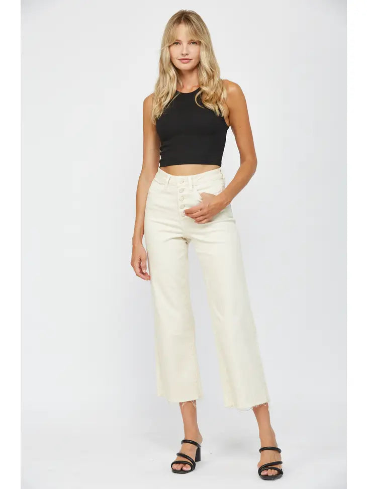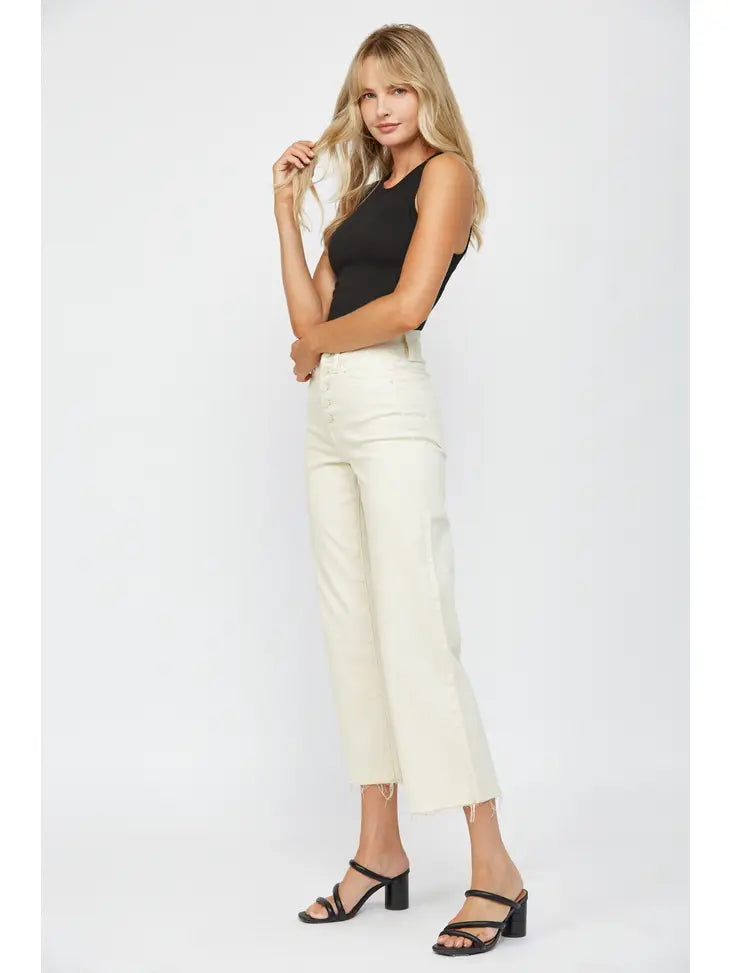 Turn heads in our High Rise Wide Crop Jeans in White! These fun and flirty jeans feature a high-waist cut that’s sure to give you a leg up on the competition. And their wide crop fit will keep you comfy and lookin’ cute!