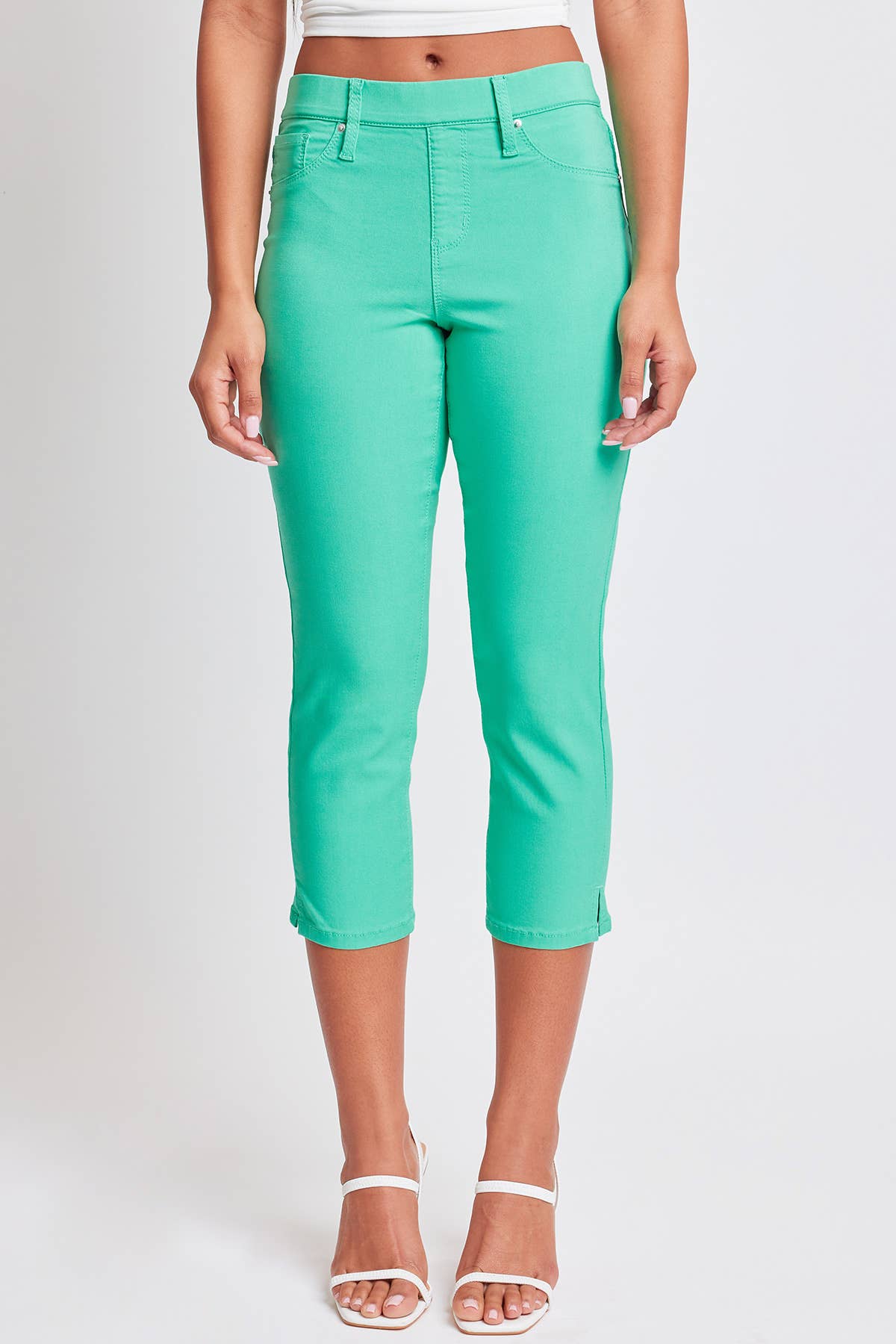 Looking for a flattering and comfortable capri? Look no further! Our Junior Hyperstretch Pull On Capri With Side Slit is made with our most stretchy and flexible fabric, making them perfect for all day wear. They feature front faux pockets for a smoothing effect, and functioning back pockets for the essentials! Available in a variety of colors for you to choose from! Product Details: -Mid-Rise -Faux Front Pockets -Functioning Back Pockets -Capri Length -Side Slit Hem Size and Fit (based on size S): -Inseam: 23" -Rise: 9.5" -Leg Opening: 13" Machine wash cold, separately inside out. Dry Flat.