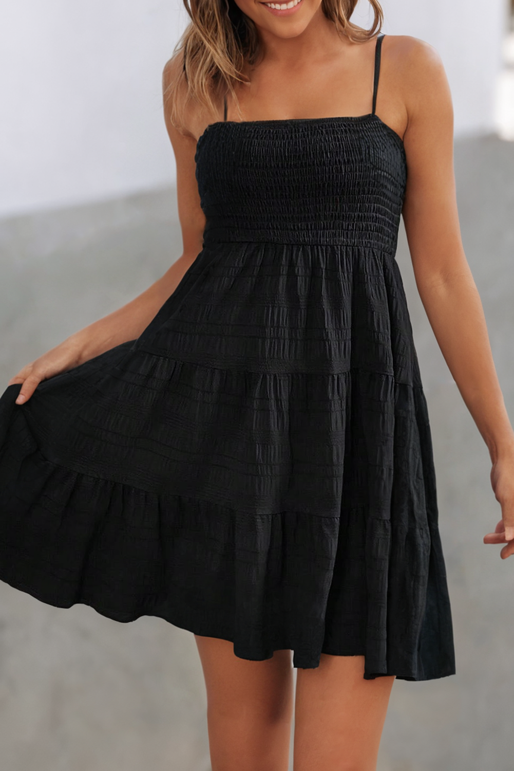 Dress to impress with the Summertime is Calling Dress! Made with 97% polyester and 3% elastane, this stylish dress offers a comfortable fit in sizes S-XL. Perfect for daily wear during the spring and summer months, the dress features a playful tiered skater style and a solid color pattern. It's time to answer the call of summer fashion with this quirky and fun little black dress.