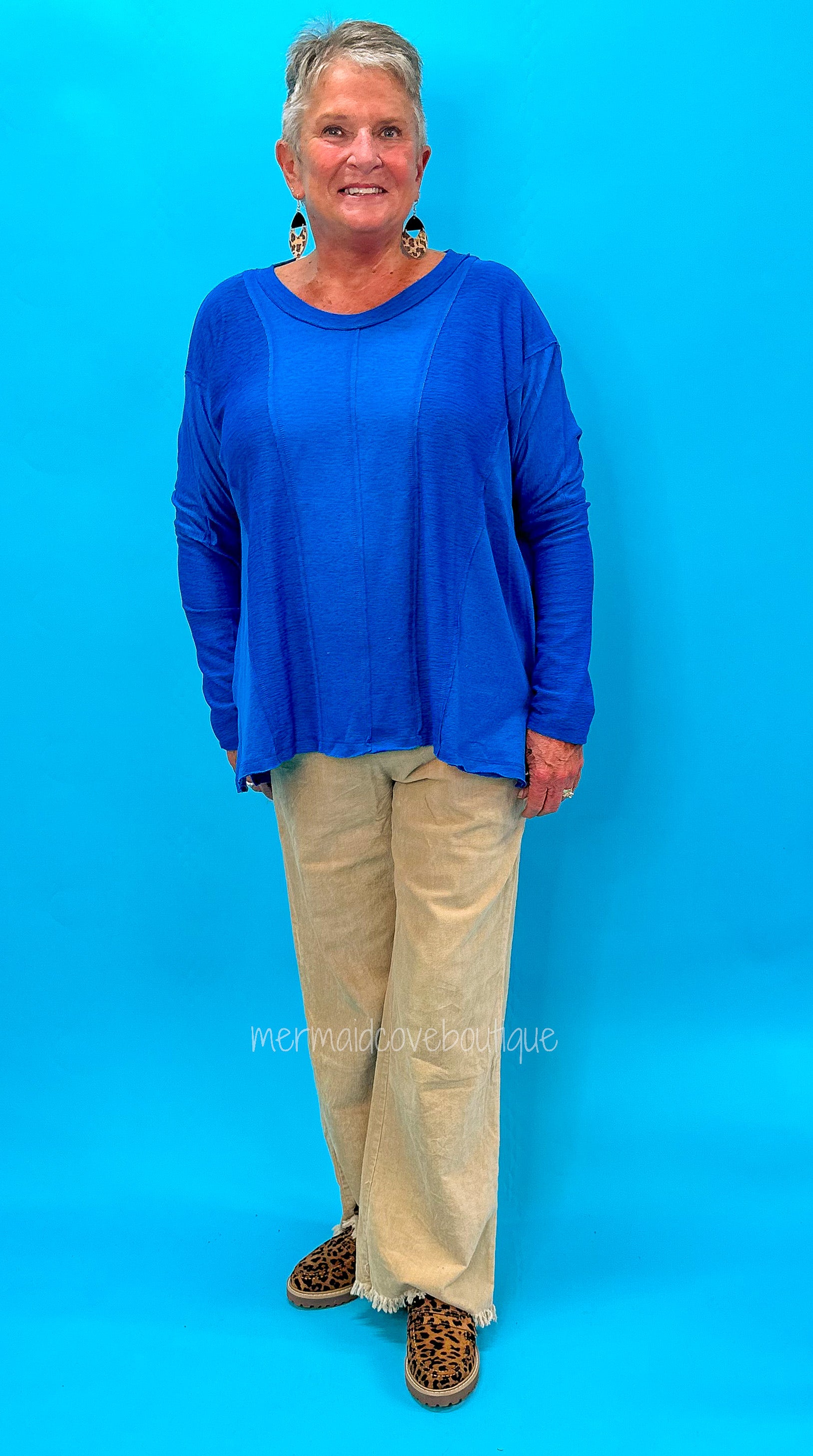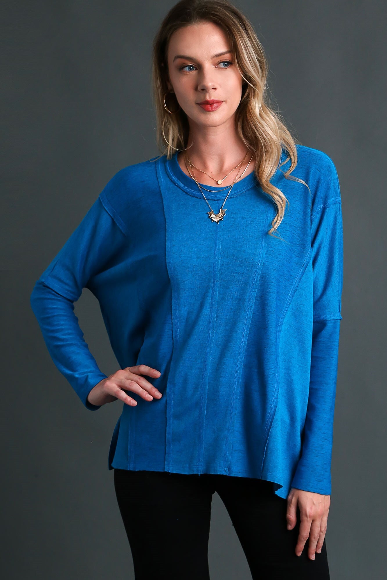 Stay warm and stylish in this Liliana Fleece Knit Top in Ocean. Made from an ultra-soft 97% polyester and 3% spandex blend, this top blends comfort and fashion with its reverse fabric details. Stay cozy all season.