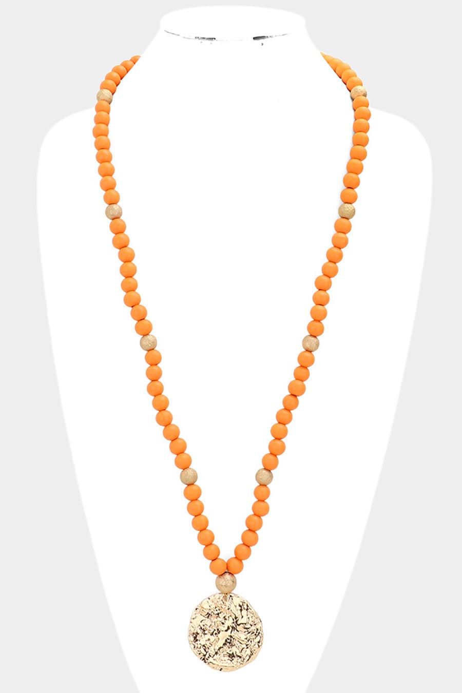 Theme : Wood Necklace Size : 32.5" + 3.5" L Pendant Size : 1.5" X 2.25"