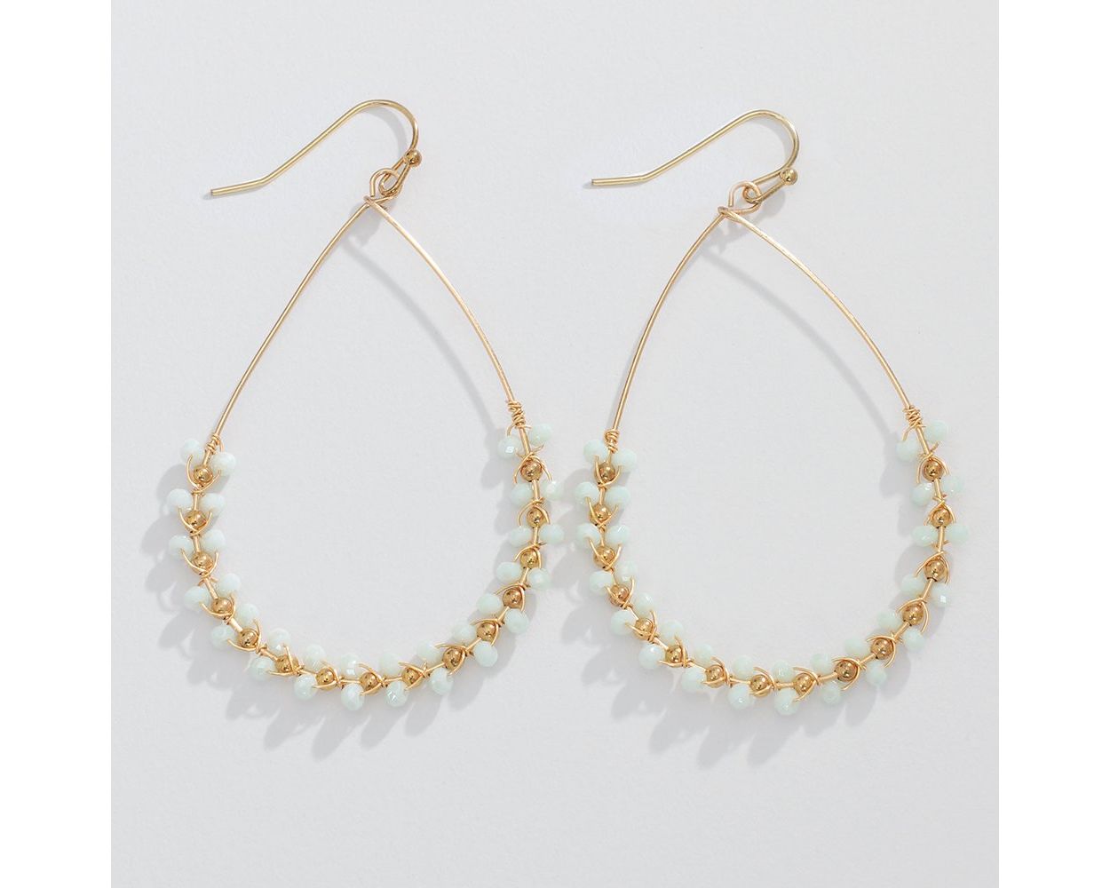 Add a touch of whimsy to your look with our Mint Beads & Gold Tear Drop Earrings. These 2" pale mint beads hang delicately from gold wire teardrops, creating a playful and chic accessory to elevate any outfit. Perfect for those who embrace their unique and fun-loving style!