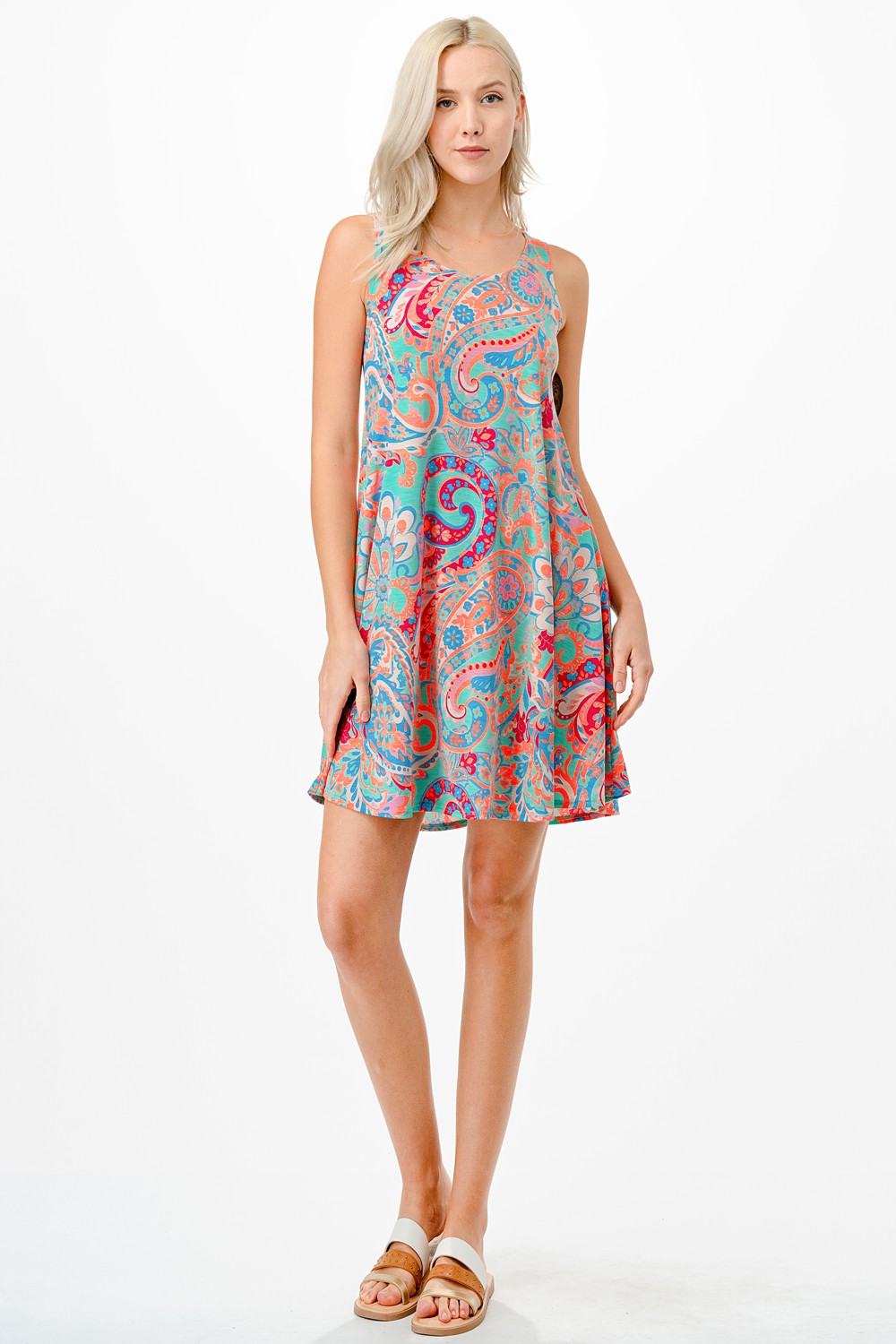 Experience comfortable style with the Paisley Power Tank Dress. This lightweight dress features a unique paisley print and convenient pockets. Perfect for sunny days, you'll stay cool and look cute in this dress.