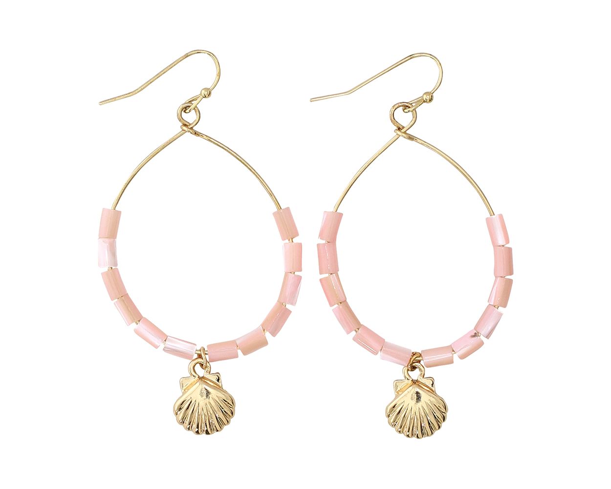 These gorgeous Pink Beads and Gold Scallop Earrings feature delicate pink shell beads with gold scallop accents, perfect for adding a touch of elegance to any outfit. Crafted with luxurious materials and careful attention to detail, these earrings are sure to become a timeless piece of your wardrobe.