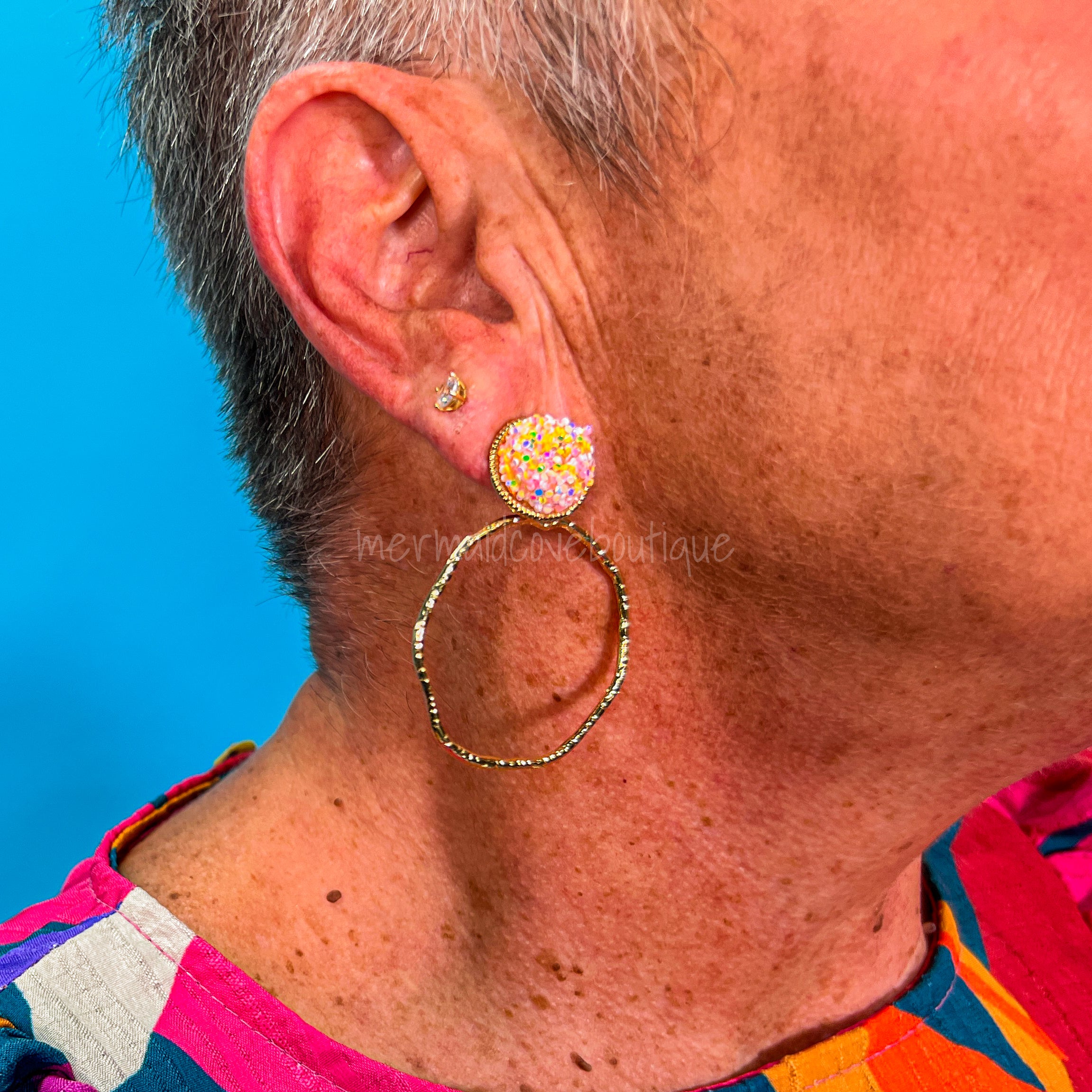 Look stylish and feel fabulous in these Pink Confetti Top Hoop Earrings! These earrings feature a pink confetti stud and a gold hoop - the perfect combination of cute and chic. Add a little bit of flair to any outfit with these fun and flirty earrings!