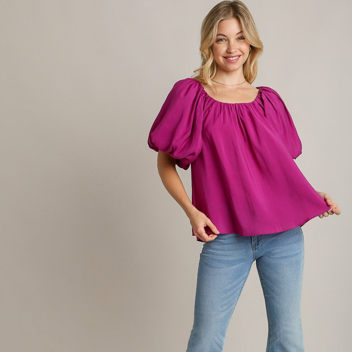 Introducing the Pleasantly Spring Top in Magenta! Made from a soft modal blend, this round neck top features delicate pleats and shirring details for a flattering fit. Complete with playful short balloon sleeves, this top is the perfect addition to your wardrobe. (P.S. it's also super comfy!)