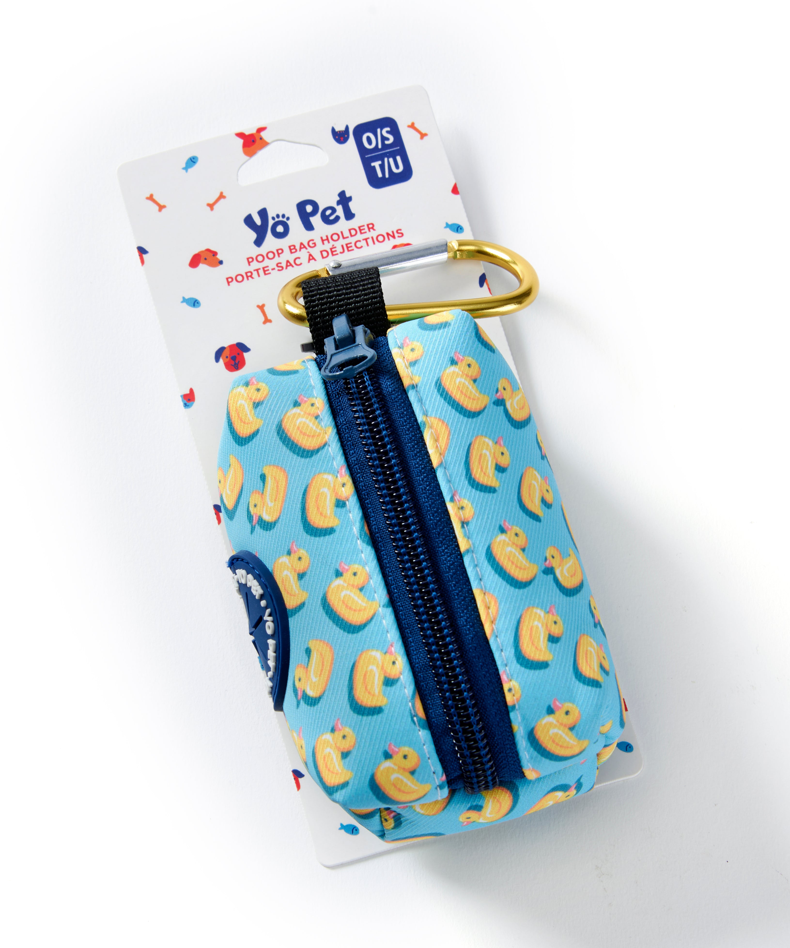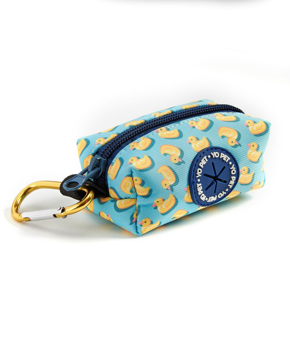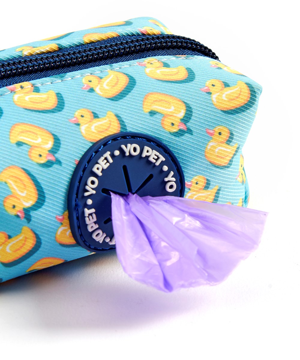 THIS BAG IS FOR THOSE UNMENTIONABLE NECESSITIES - Say goodbye to messy and embarrassing moments on your walks with this cute and stylish poop bag holder with an all over ducklings print. Simply load it with your preferred poop bags, and the SILICONE DISPENSER SLOT allows for quick and hassle-free retrieval of a bag whenever you need it. The fits comfortably in your pocket or purse. It comes with a convenient CARABINER HOOK, allowing you to attach it to your keys, leash, or belt loop for easy access. Made of EASY TO CLEAN FABRIC with Yo Pet branding. 95% Polyester, 5% Aluminum Alloy.