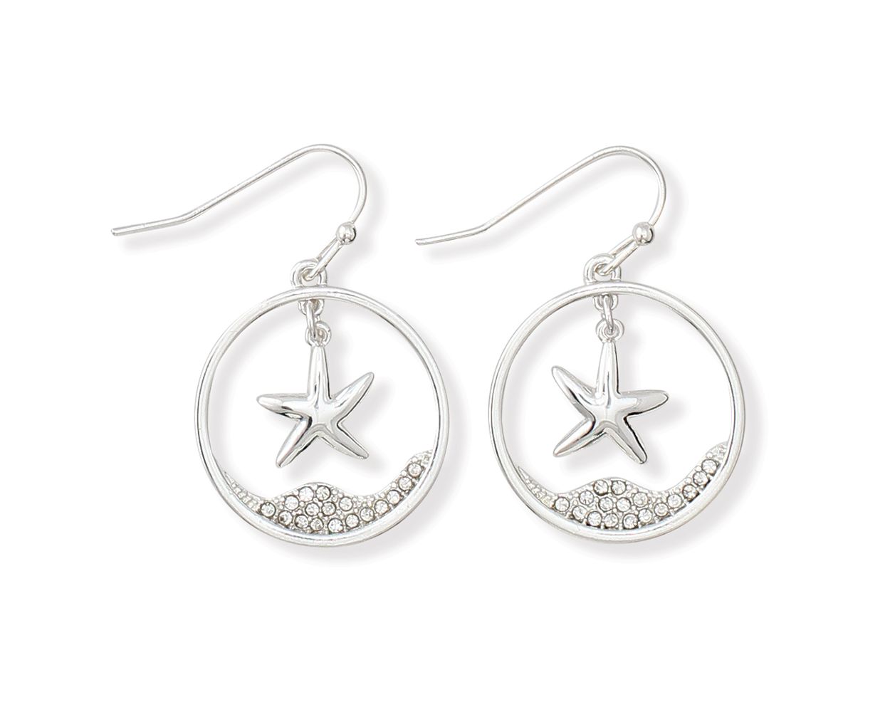 Take a walk on the coast with these dazzling Round Silver Starfish Scene Earrings! Studded with crystals, these dangly earrings will have you feeling nautical and nice all day long. Plus, you'll get a sparkle out of these starfish that's out of this world!