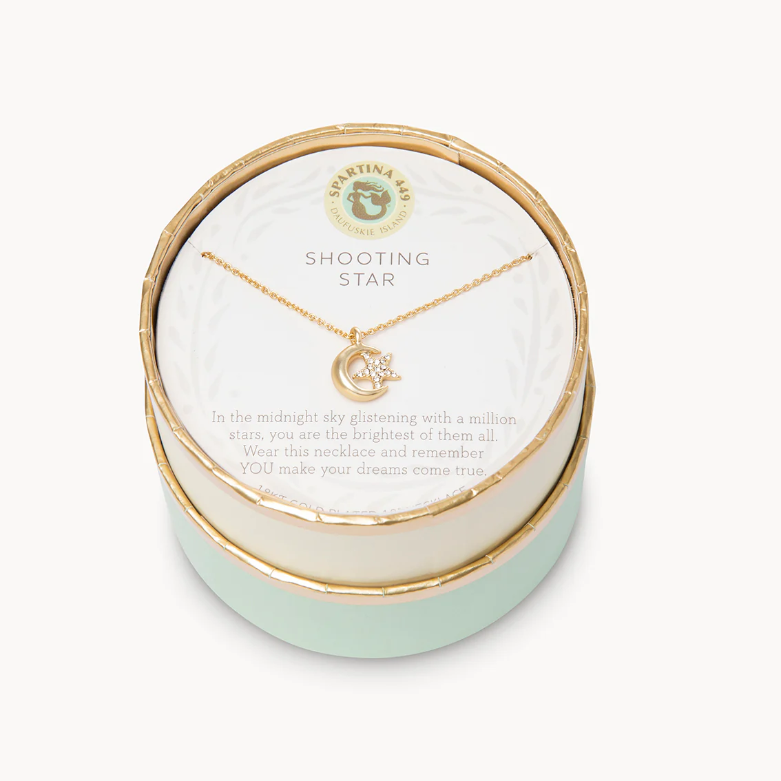 Shine bright and dream big with the Sea La Vie “Shooting Star” necklace. Featuring a sparkling star resting on a crescent moon, this delicate piece is a reminder that you are the light in the night sky. Wear it as a daily dose of inspiration—you’ve got what it takes to make your dreams come true.