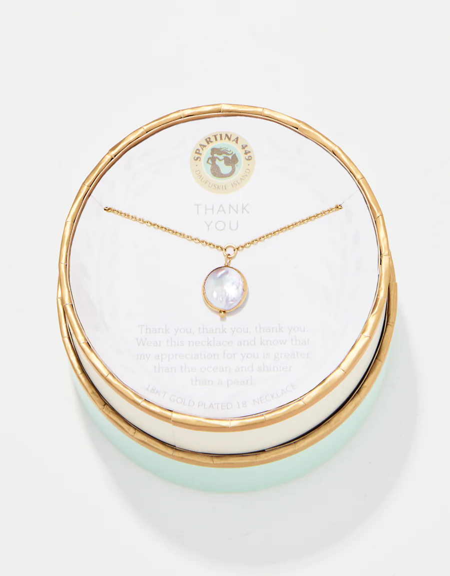 This “Thank You” necklace is a beautiful little token of gratitude—sweet, simple, and meaningful. Featuring a luminous coin pearl, it’s a perfect way to say “I appreciate you more than words… and pearls.” A heartfelt gift that speaks volumes without saying a word.