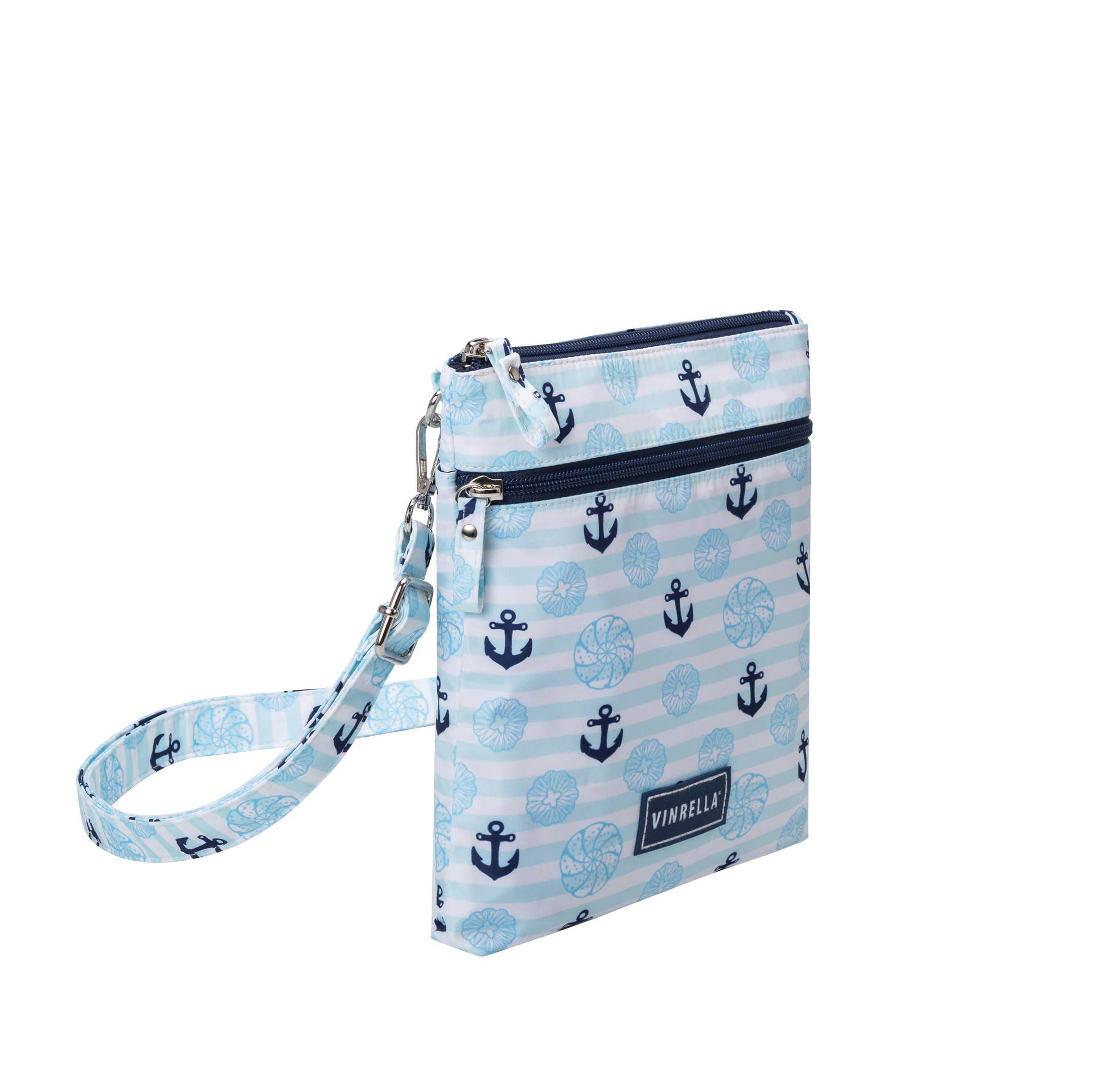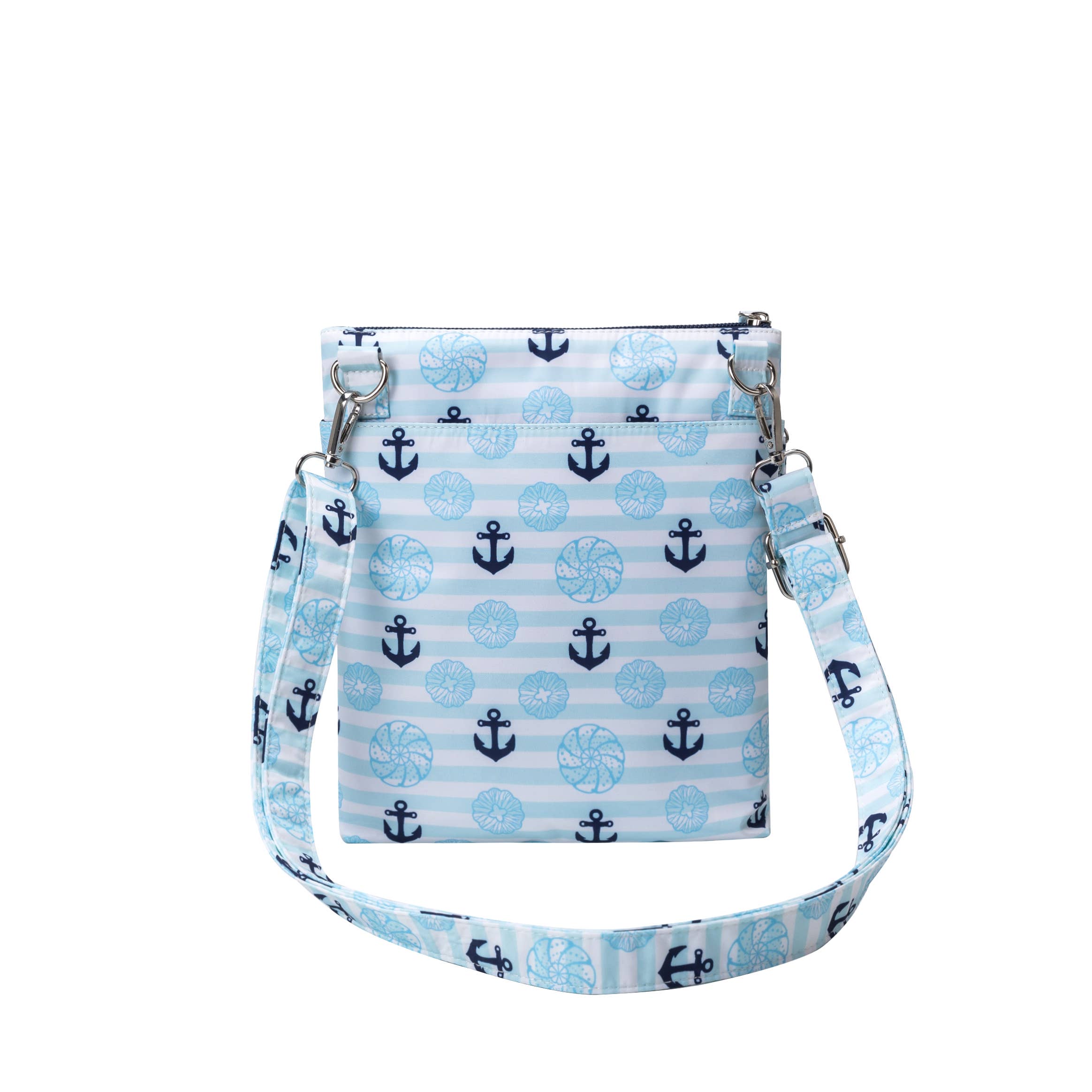 100% Polyester, Silky Smooth, Water Resistant, Front and Zip Back Pockets for Essentials Items, Adjustable Strap. 8.5" W x 10" H