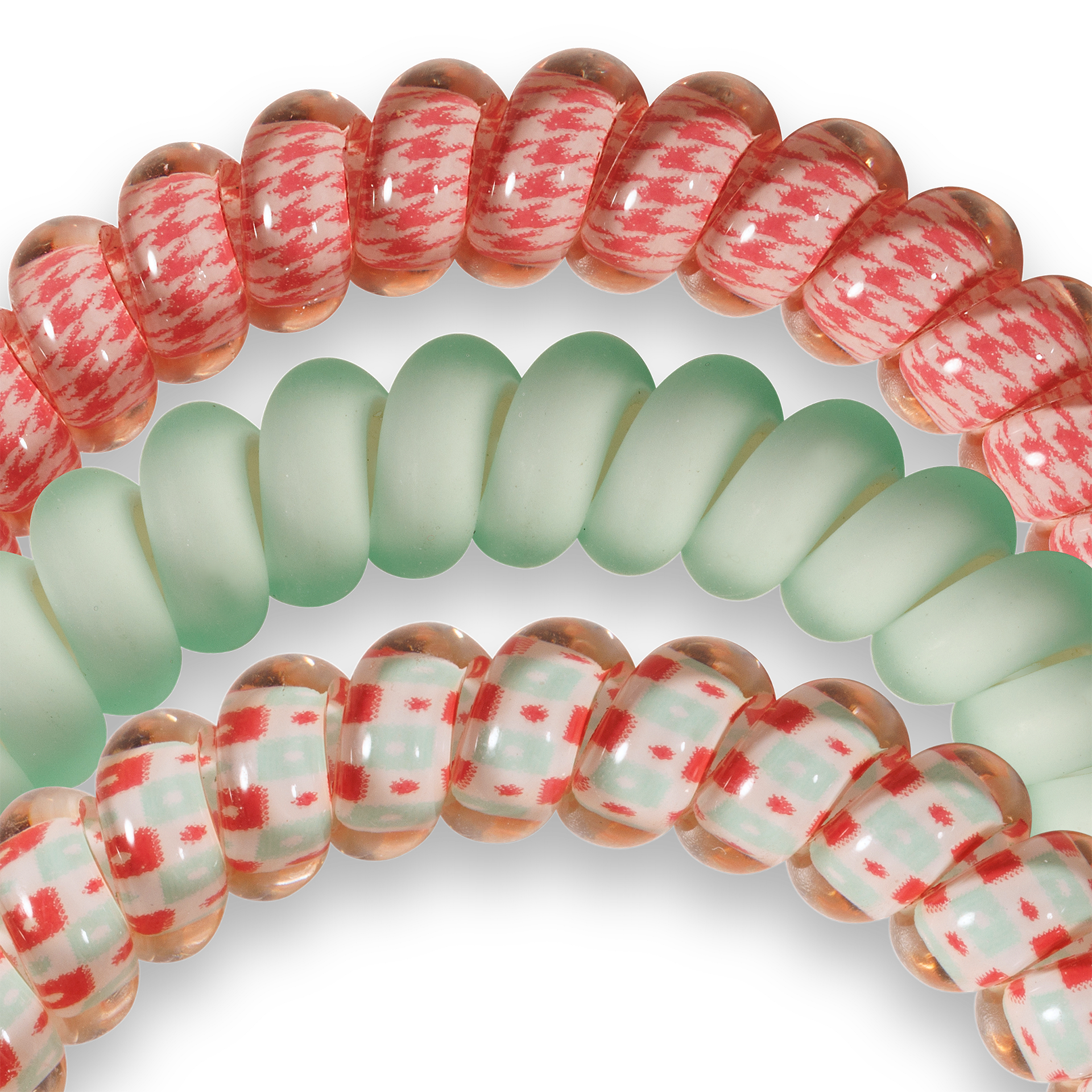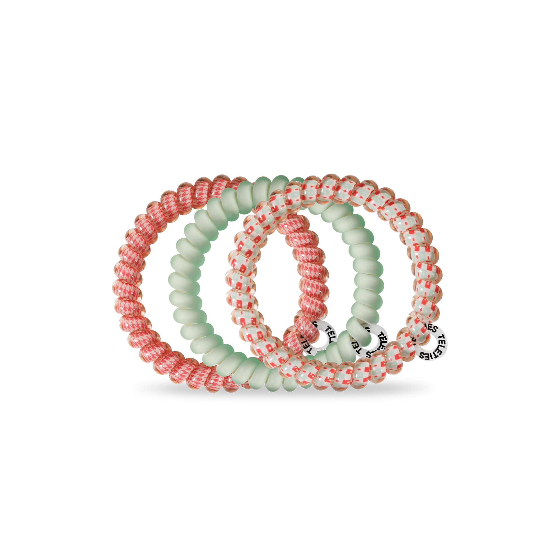 Refresh your look this season with TELETIES latest collection of Spring Hair Ties. Designed to bring shimmer, shine and color to every one of your Springtime looks. Whether you’re tying your hair up in a bun or adding a pop of color to your wrist, you’ll be reaching for these Spring Hair Ties for years to come! Sold in packs of three. The small size is 4.5cm wide x 0.5cm thick.