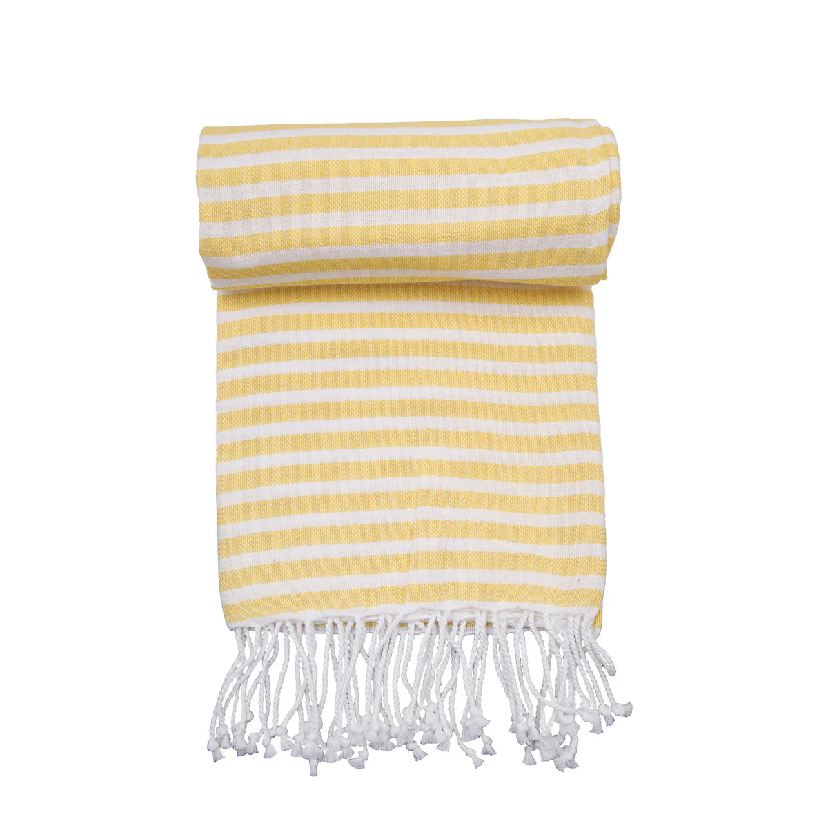 Add a pop of color to your summer with these Striped Cabana Fouta Towels. Made in India, these cheerful towels feature alternating stripes of white and vibrant navy, aqua, or daffodil. Perfect for summer gatherings, their casual vibe is sure to brighten up your season.