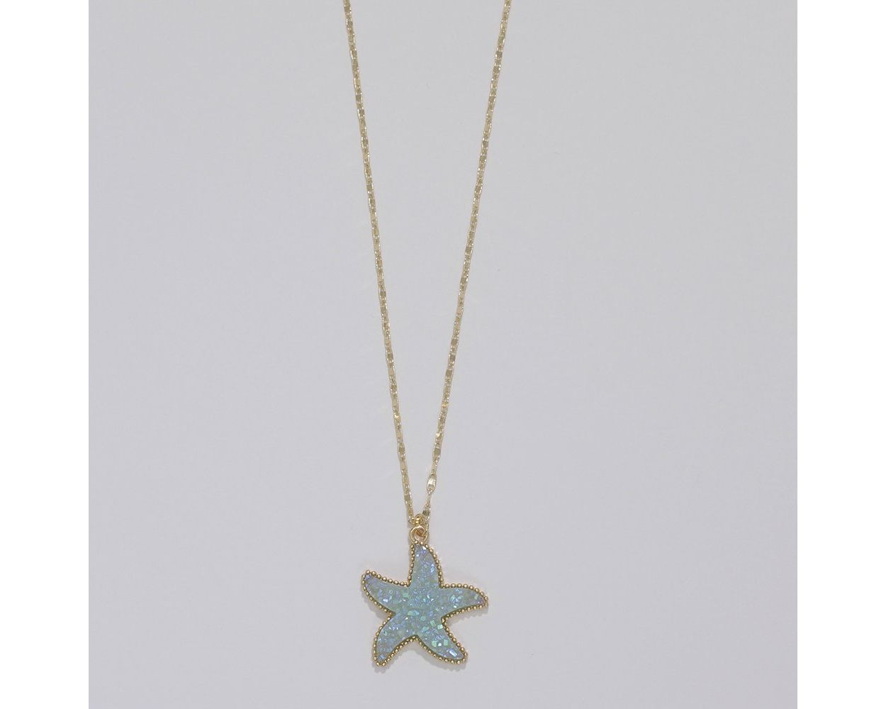 Shine bright with this shimmering opal druzy starfish necklace, finished with an AB sparkle! The iridescent starfish adds a touch of beachy glamour and magical shine to any outfit. Perfect for making waves wherever you go!