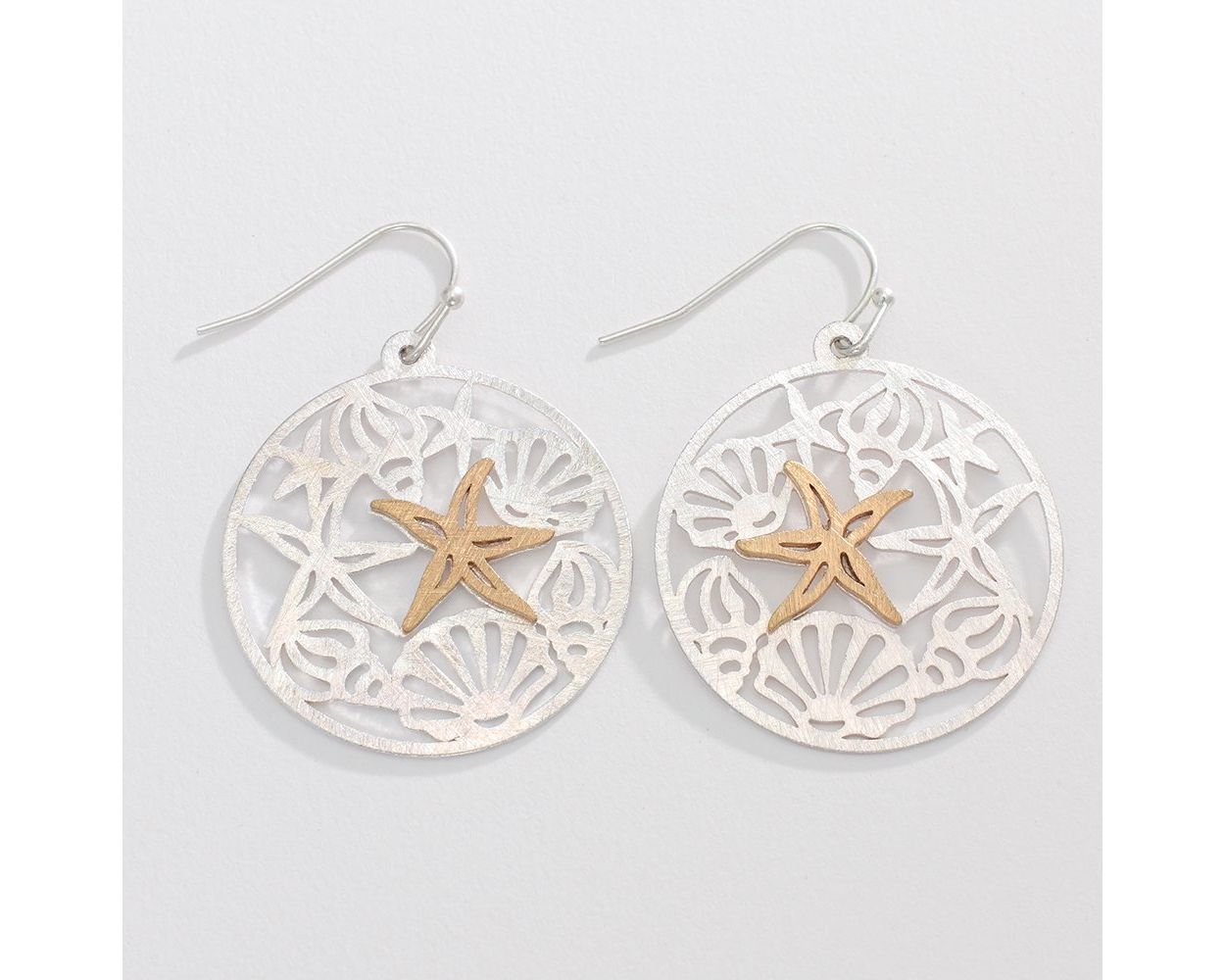 Add a touch of whimsy to your outfit with these Two-Tone Sea Life Earrings. Featuring brushed cutouts of various sea creatures, these earrings add a playful and unique twist to your style. Perfect for any ocean lover or anyone looking for a fun accessory.